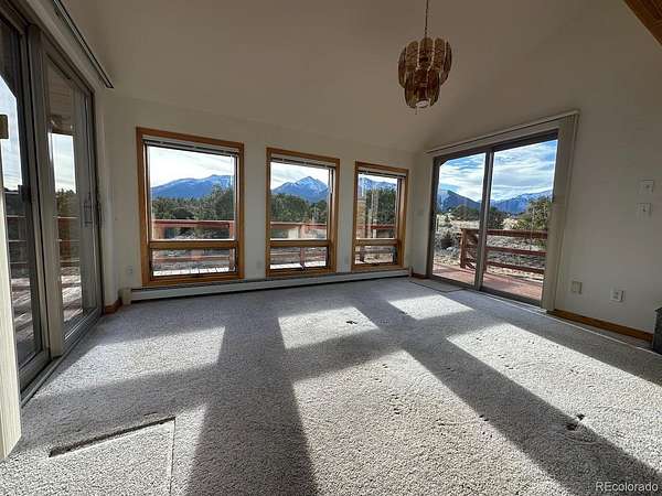 Rare double lot in one of Central Colorado's most desirable neighborhoods - Mesa Antero. Iconic mountain views from oversized windows in multiple rooms, including living room, dining room, main suite. Open plan kitchen, dining, living area has exceptional mountain views & wood stove, with gas lighting feature. Large kitchen bay windows overlook gulch, while kitchen island provides extra counter & cabinet space, and a working/gathering space. Large main suite includes walk-in tub, stand-up shower, bathtub with shower, multiple sinks, oversized walk-in closet & huge bonus storage area. Bonus/sun room with multiple oversized windows provides access to large outdoor patio on lower level. Bed room/office on lower level has oversized windows overlooking gulch & a dark room with sink. Multiple covered decks provide easy access to outdoors. Extensive landscaping includes well treed, lighted private walking trail, with multiple sitting areas, multiple electrical outlets, & water spigots. Domestic well permits landscape watering. Stamped concrete driveway includes oversized parking area & entrance lighting. Oversized attached 2 car garage is heated & includes workshop. Oversized, heated, detached RV garage has 30amp service, with separate outside parking area with second 30amp service. There is dry hydrant on lot & Mesa Antero has undergone extensive fire mitigation. Wild turkey, elk, mule deer, moose, bear, mountain lion, bob cat are all known to frequent Mesa Antero. Outdoor Recreation in area includes: whitewater rafting, kayaking, Gold Medal Trout Fishing, road & mountain biking, downhill skiing, cross-country skiing, snowshoeing, snowmobiling, hiking, etc… Easy driving distance of Browns Canyon National Monument, Mt Princeton Hot Springs & Resort, Arkansas River, Monarch Mountain Ski Resort, Salida, Buena Vista. This home was meticulously designed, built & maintained. With a few simple updates, it can easily become your Colorado Mountain Dream Home.