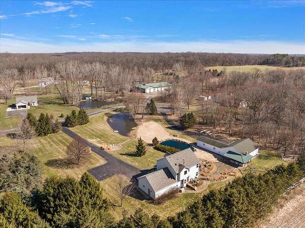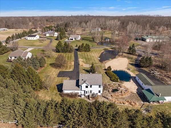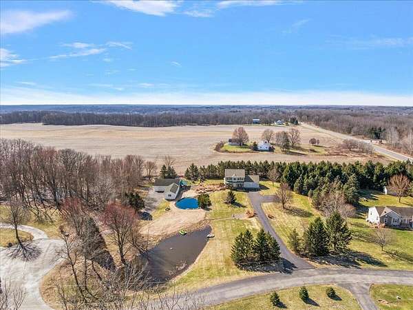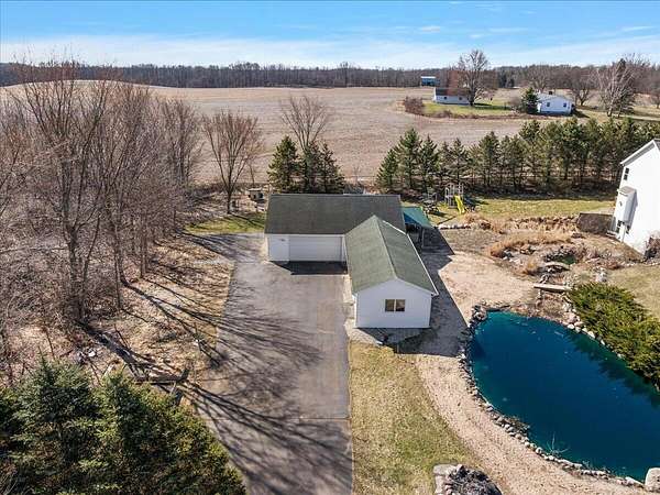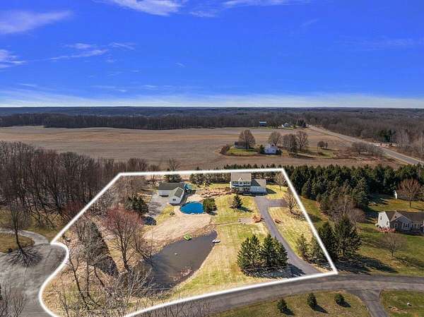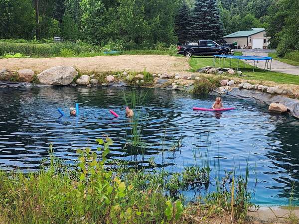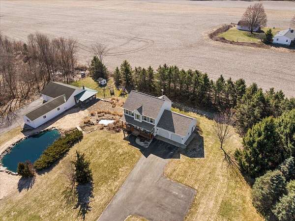 If you've been looking for privacy, space, and something truly different--this is it. This one-of-a-kind 4-bedroom, 4-bath home with a main-level office sits on 1.8 acres and offers a rare combination of comfort, updates, and outdoor living. The property features a nearly 2,000 sq ft barn complete with heat, water, and a bathroom--perfect for hobbies, storage, or a fully functional private workspace. Recent improvements include a newer roof, windows, flooring, furnace, and air conditioner, giving you peace of mind from day one. Step outside and you'll find what truly sets this property apart: a fully functional all-natural swimming pool, a stocked pond, and established raised garden and flower beds--creating a peaceful, one-of-a-kind setting that's nearly impossible to replicate. With natural gas, a paved road, a paved driveway, and close proximity to town, you get the best of both privacy and convenience. The private drive includes access to a shared common area to the east available to all homeowners.