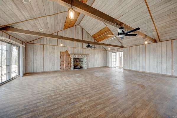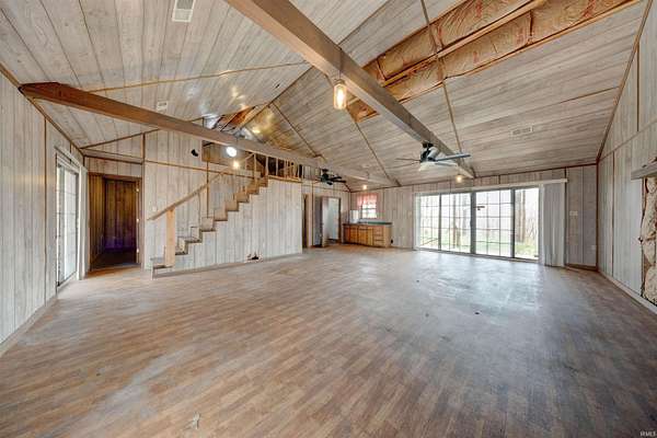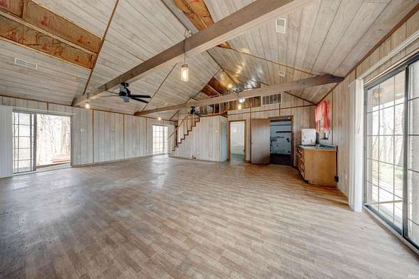Properties like this do not become available often! Two Bedroom one bath cabin secluded on 16.57 acres high above Rome, Indiana with easy access off Hwy 66. Only 3.5 miles from both German Ridge in the Hoosier National Forest and the public boat ramp in Rome. 10 miles from Derby, where you can get necessities and a meal, this is a nearly perfect getaway location. Perfect for a hunting cabin, retreat, or a residence, the cabin is move-in ready but does need some work. The main level features a great room/ kitchen area, a bedroom, a full bath, and a pantry/laundry area that includes the water pump and filtration system. The owner had begun to remodel and did not have an opportunity to finish. As such, the savings are yours and you can make it your own. The 16.56 acres feature a variety of mature trees and and animals to delight any nature lover. There is plenty of room for additional outbuildings, trails and a beautiful view through the trees of the Ohio River Valley. This type of location is getting hard to find and this one will not last long.