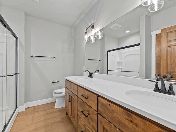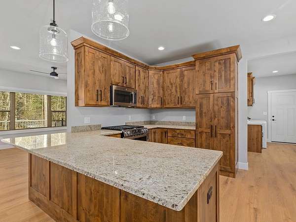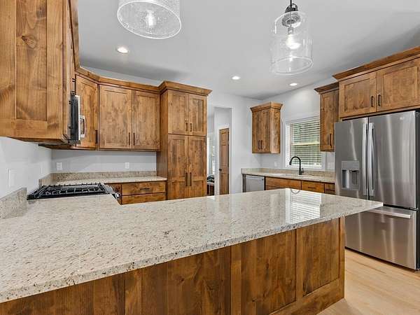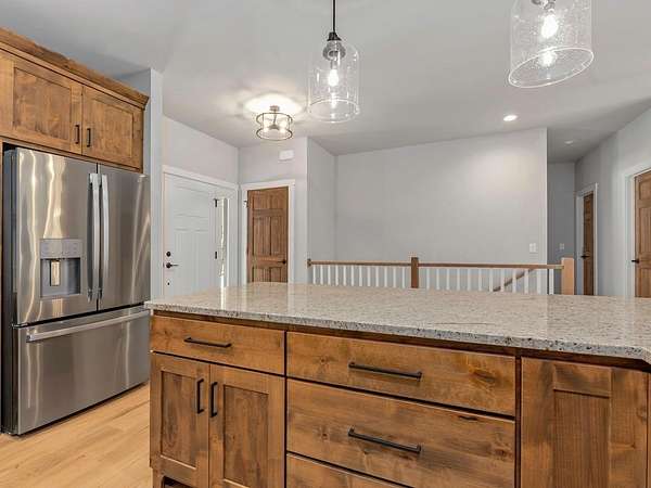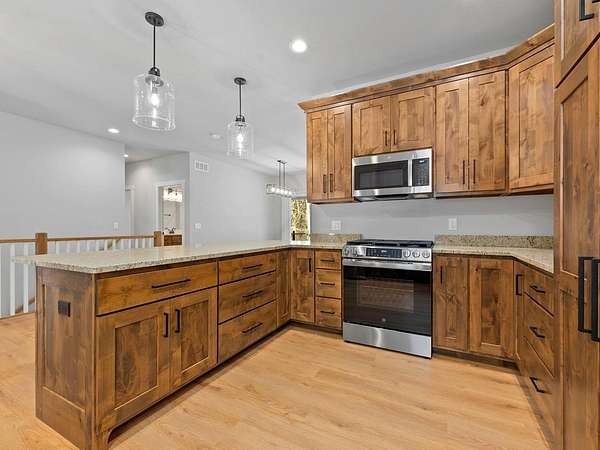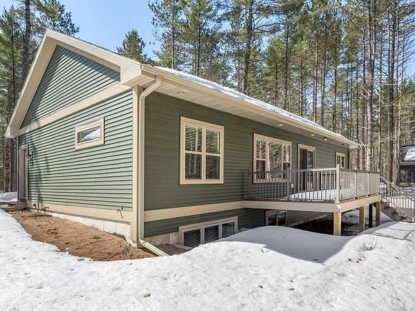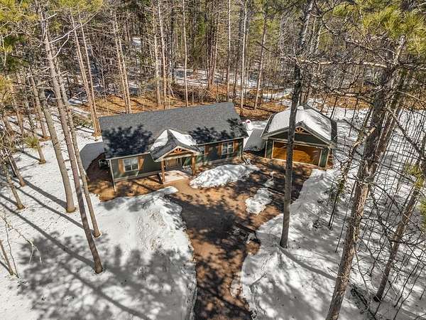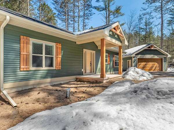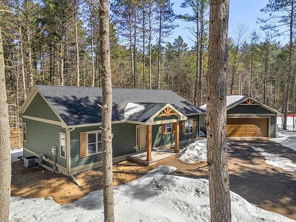 Welcome to your brand-new Northwoods retreat in beautiful Manitowish Waters! This stunning 5-bedroom, 3 full bathroom home offers approximately 2,700 square feet of thoughtfully designed living space, perfectly set on 1.64 acres of peaceful, wooded privacy. A 2-car detached garage provides ample storage for vehicles, toys, and gear. Step inside to discover a bright, modern interior featuring a beautifully appointed kitchen with granite countertops, custom cabinetry, and a layout designed to maximize both space and functionality-ideal for everyday living and entertaining alike. The main level also includes convenient laundry and a spacious primary suite complete with a private en-suite bathroom and walk-in closet with two additional bedrooms and full bathroom. The finished lower level expands your living space with two additional bedrooms, a full bathroom with Jack-and-Jill sinks, and plenty of room to relax or entertain in the large family room and game room. Every bathroom in the home is finished with elegant quartz countertops, adding a touch of luxury throughout. Enjoy year-round comfort with central heating and air conditioning. Outside, take in the quiet, private setting from your covered front porch or unwind on the back deck overlooking the serene wooded acreage. This property offers the perfect blend of modern comfort and Northwoods charm-ideal as a year-round home or a peaceful getaway.