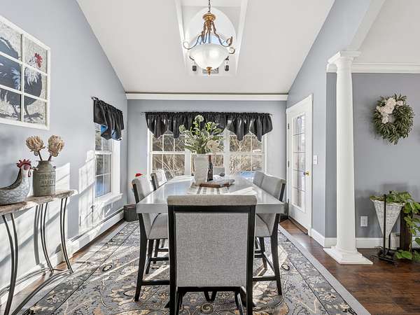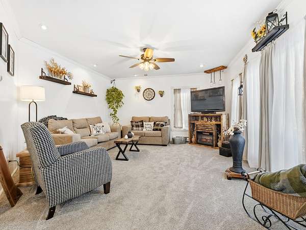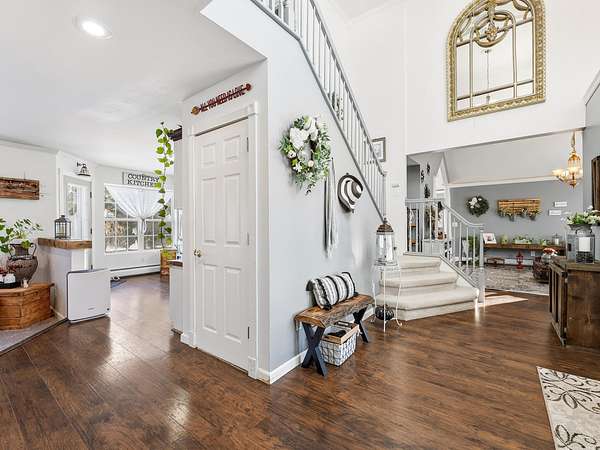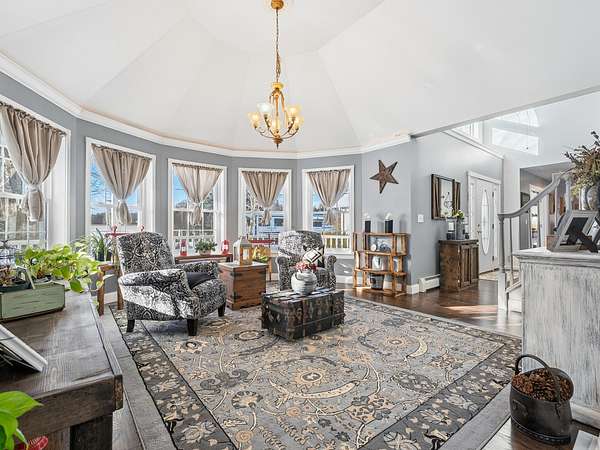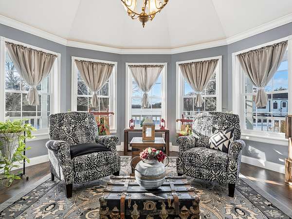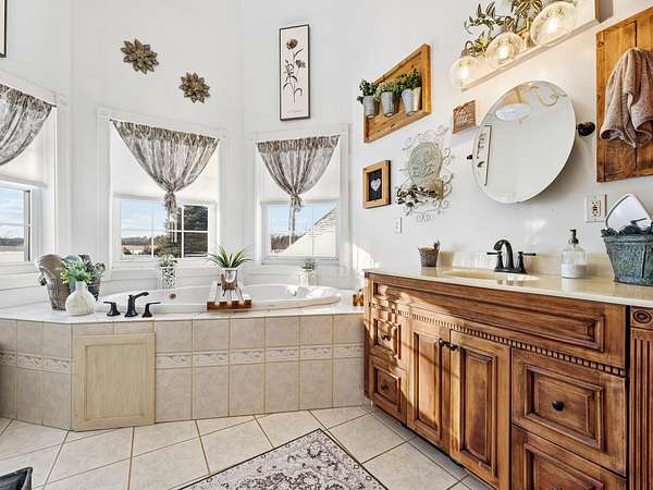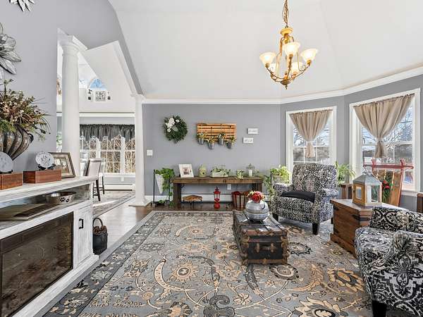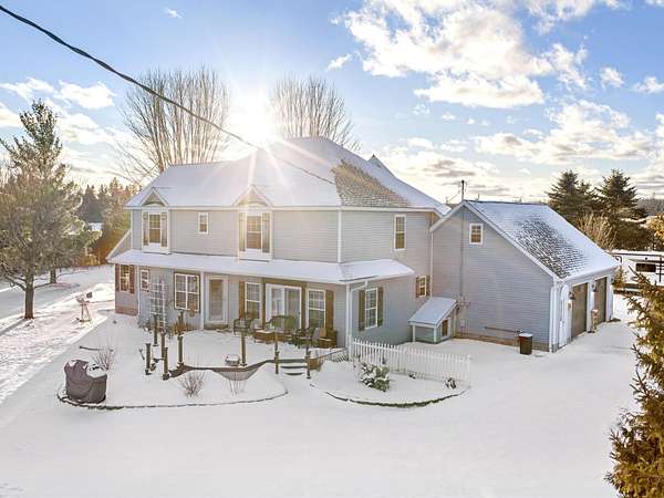 Nestled on 2.67 park-like acres, this beautiful home blends timeless elegance with upscale modern farmhouse features. Inside, you'll find maple cabinetry, high-end appliances, and a thoughtfully designed layout that includes formal living and dining rooms, a warm and inviting family room, and a private den-perfect for a home office or library. The spacious primary suite offers a serene retreat with ample room to unwind. Enjoy the convenience of both attached and detached garages, providing plenty of space for vehicles, storage, or hobbies. Surrounded by natural beauty and set on a truly park-like parcel, this exceptional property offers privacy, space, and refined style in one remarkable setting.