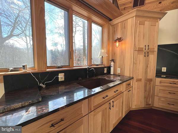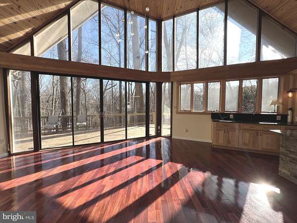 Beautiful contemporary A-framed home in the prestigious Eagle's Nest community. This home in the country is only minutes to Towson & 695! The serene setting is breathtaking with views from all angles of this home with floor to ceiling windows and extensive decking. Enjoy entertaining in the gorgeous gourmet kitchen with professional gas cooktop and large island. There is also a wet bar and plenty of counter space made from gorgeous stone. The main level open concept floor plan also features an overlook from primary bedroom, wood burning fireplace and sliders to the decks. There are 2 bedrooms and a newly remodeled dual entry full bathroom on the main level making one bedroom a second primary suite. The upper level primary bedroom is huge with a newly remodeled ensuite bathroom, 3 closets, a sitting area, overlook to lower level and a private deck. The lower level features a wood burning fireplace, new luxury vinyl flooring, a bar and another newly remodeled full bathroom. There is also a wine cellar and many wine racks to display your wine throughout the lower level if desired. Lower level storage and laundry. 3 car garage and driveway parking pad. Great location to schools, Peerce's Restaurant and Loch Raven Reservoir. Tenant occupied with 24 hours notice required. Home and carpeting will be professionally cleaned.