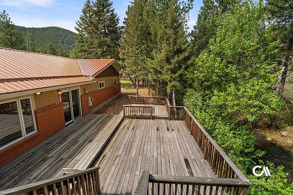 Fish in the creek from your own deck? What a dream. Yes please!! A peaceful retreat waits for you at this creek frontage property tucked away on 3.87 acres of serene Montana beauty. Enjoy the soothing sounds of Tenmile Creek from your expansive deck, explore the creek frontage, work in the garden area, or just relax and take in the beautifully maintained grounds. You won't believe you're only a 15 minute drive to downtown Helena. The charming 3-bedroom, 2-bath home features a large sunroom filled with natural light and a quaint kitchen warmed by a cozy fireplace and features a convenient butlers pantry. Don't miss the bonus room/office off the main floor bedroom. Recent updates include a gorgeous new metal roof and a solar system for energy efficiency. The attached 2-car garage includes additional shop space, ideal for hobbies or storage. A true Montana setting, complete with a foot bridge as well as a car bridge--private, peaceful, and picturesque.
