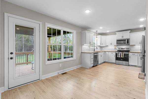 Welcome Home! This 2023-built home is situated on 2 private acres and offers the best of both worlds: quiet surroundings with stylish, move-in-ready finishes. The heart of the home is the gorgeous kitchen, designed to impress with granite countertops, subway tile backsplash, under-cabinet lighting, soft-close cabinetry, stainless steel appliances, and a walk-in pantry. The formal living room features a cozy fireplace, while the dining room is the perfect spot to entertain. Upstairs, you'll find a versatile flex space that can easily become your home office, playroom, or hobby room. The primary suite feels like a retreat with trey ceilings, double vanities, and a generous walk-in closet. Three additional bedrooms provide plenty of room for everyone. Outdoor living is just as inviting--relax on the covered back deck, enjoy the wide-open views, or gather around the firepit for evenings under the stars. A two-car garage adds convenience, and the VA assumable loan option makes this home even more attractive. If you've been looking for a modern home with space to breathe, this Southside dream spot is calling your name! Schedule your tour today!