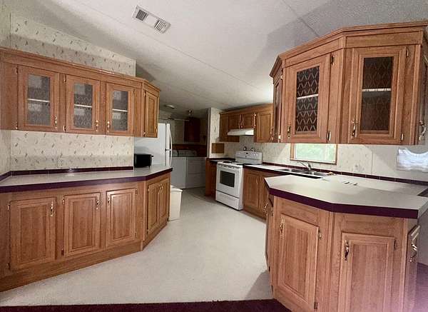 - Blinds, Ceiling Fans, Eat-In Kitchen, Electric Dryer, Electric Range, Kitchen/Dining Combo, Laundry/Utility Room, Living Room, Open Floor Plan, Pass Thru Counter, Split Floor Plan, Top Load Washer