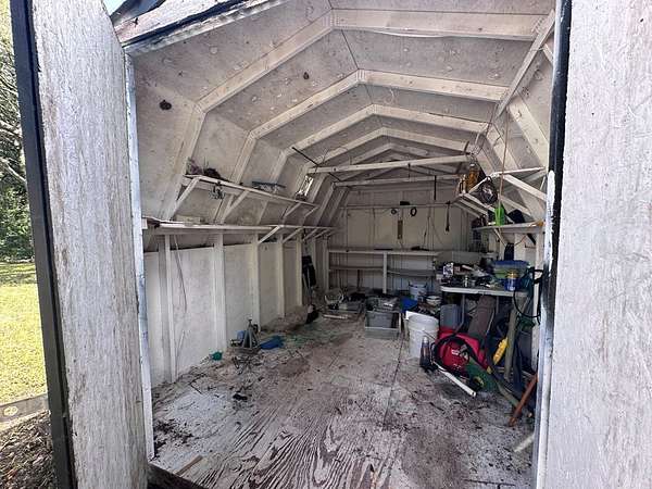 - Enclosed Porch, Gutters/Downspouts, Open Deck, Shed
