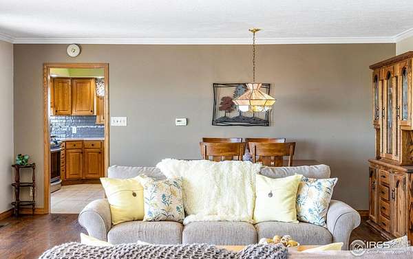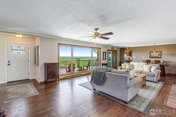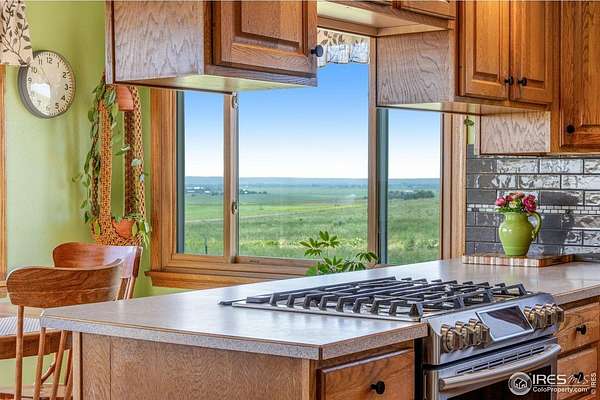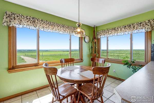 Experience peaceful country living on this stunning 80-acre property perched on a bluff and overlooking Sterling, CO. Enjoy breathtaking sunrise and sunset views from the spacious front concrete porch or unwind in the hot tub on the large back deck. This charming 2,384 sq ft ranch-style farmhouse features 3 spacious bedrooms, 2 bathrooms (1 full, 1 three-quarter), and timeless character throughout. Built in 1961, the home offers a mix of comfort and charm with a family room, living room, brick fireplace, wood-burning stove, breakfast nook, and large picture windows that flood the space with natural light. Additional highlights include a newer Class 5 shingle roof, newer exterior paint, a new front door, and all stainless-steel appliances and the washer and dryer. The lush backyard and asphalt driveway enhance the property's appeal, while the 1,516 sq ft detached drive-thru shop offers incredible space for hobbies, equipment, or storage. The 500-gallon propane tank is owned, and the property includes a 14-month Blue Ribbon Home Warranty for peace of mind. Whether you're looking for a private homestead, hobby farm, or quiet retreat, this one-of-a-kind property combines rural serenity with everyday comfort.