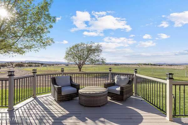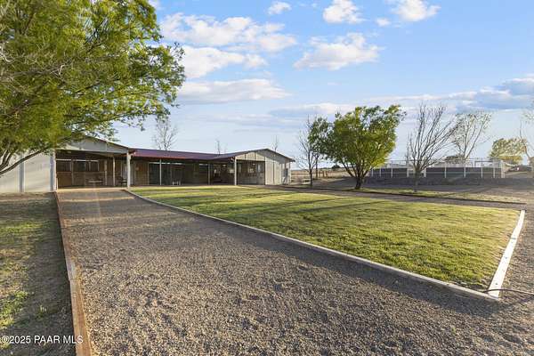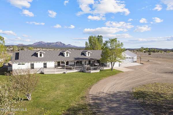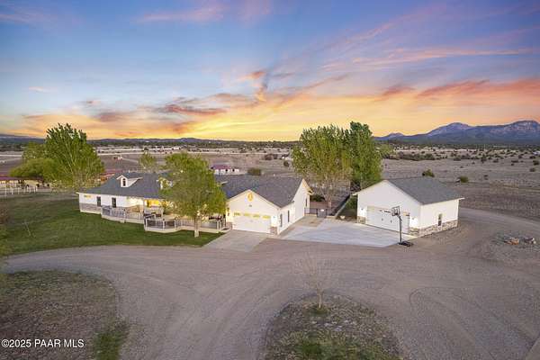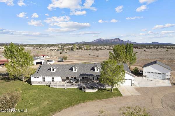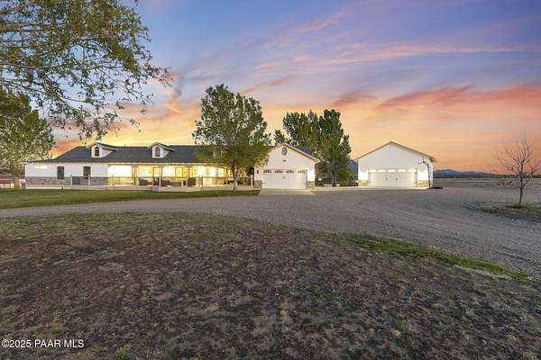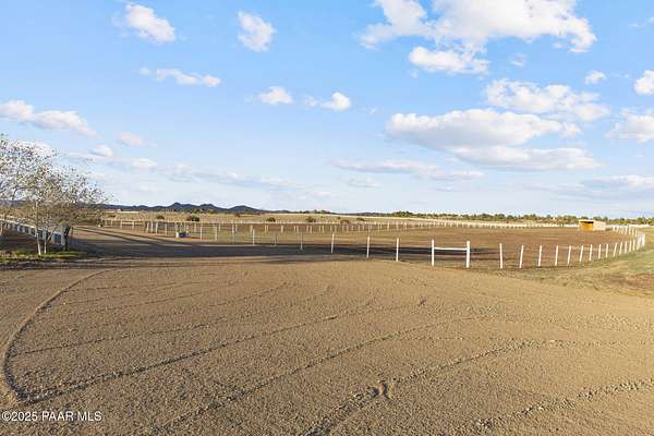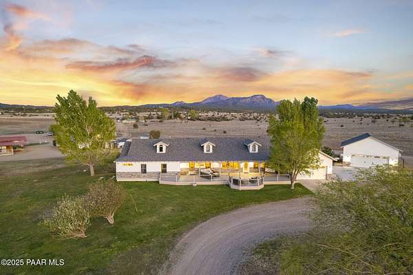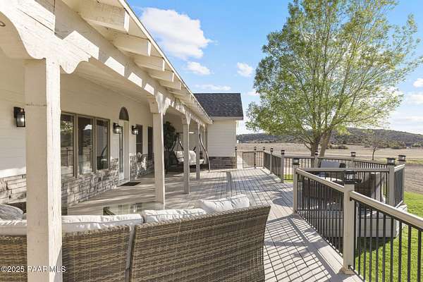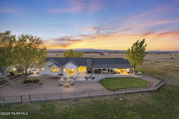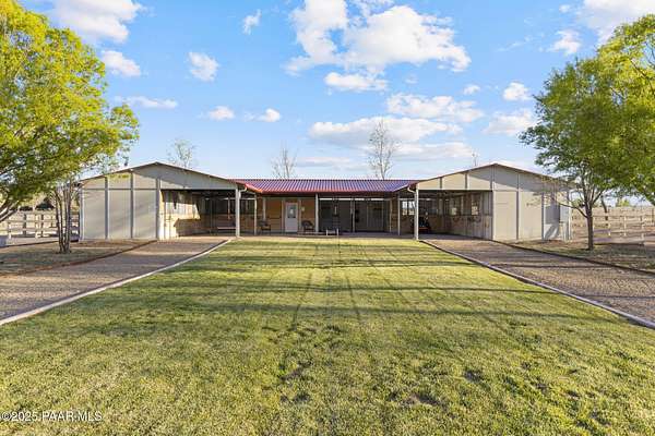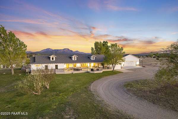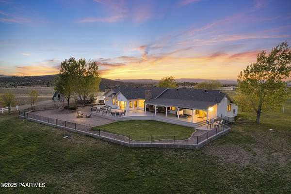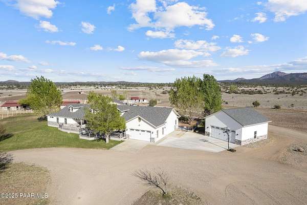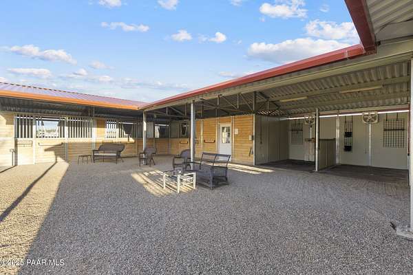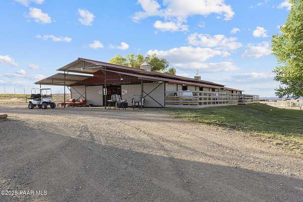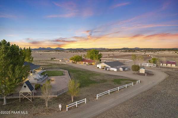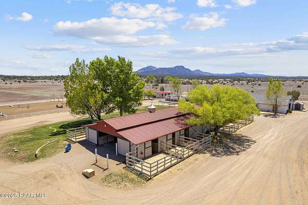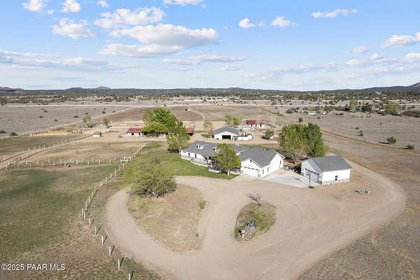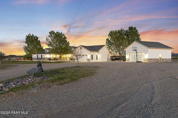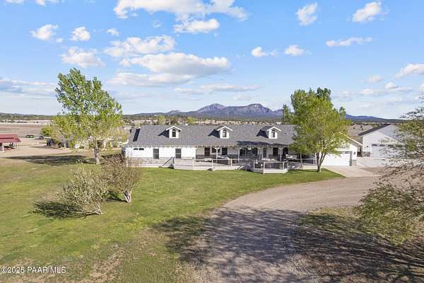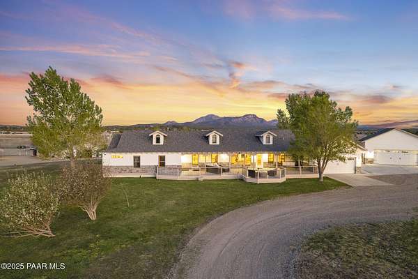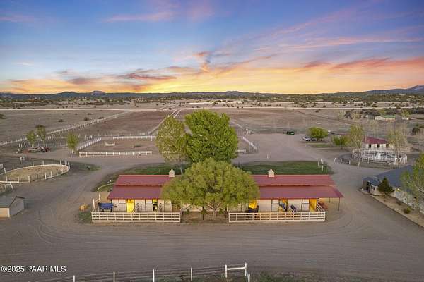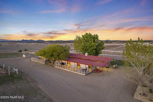 Welcome to Happy's Dream Ranch, an equestrian paradise just 25 miles from downtown Prescott. This stunning 36 acre property, nestled in Long Meadow Ranch, features a beautifully designed 3,586 sf modern farmhouse that perfectly blends warmth & elegance. For equestrian enthusiasts, this property is a dream come true: a 12-stall main barn equipped w/ generous 12x12 & 12x16 stalls, complete w/ runs, two spacious tack rooms, wash racks, & a convenient fly spray system to keep your horses comfortable. Additionally, there's a lower barn w/ 8 more stalls offering the same features for your equine companions. The property also includes a hay barn w/ a bunkhouse and a cozy tiny home for guests or caretakers. With perimeter & cross fencing, you can ride confidently in the 120 x 240 arena & more...