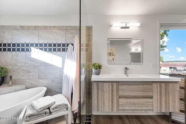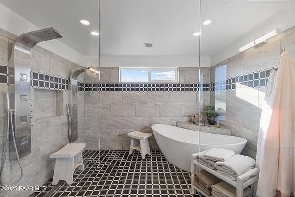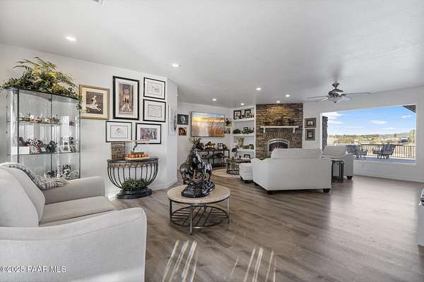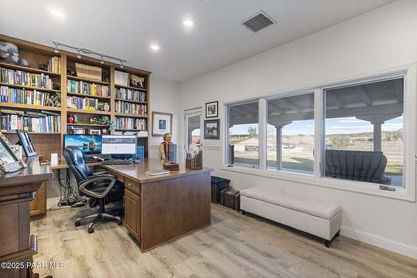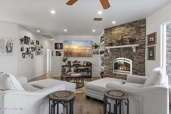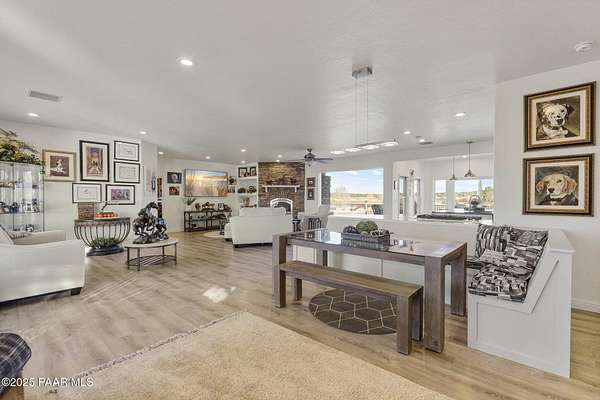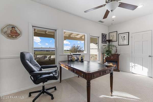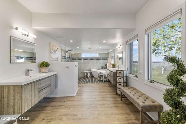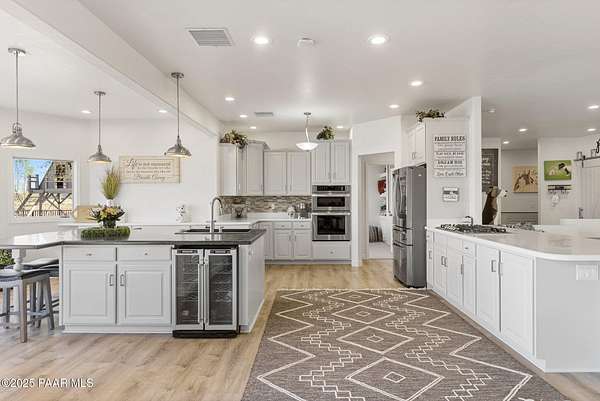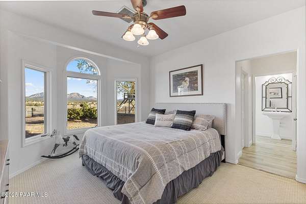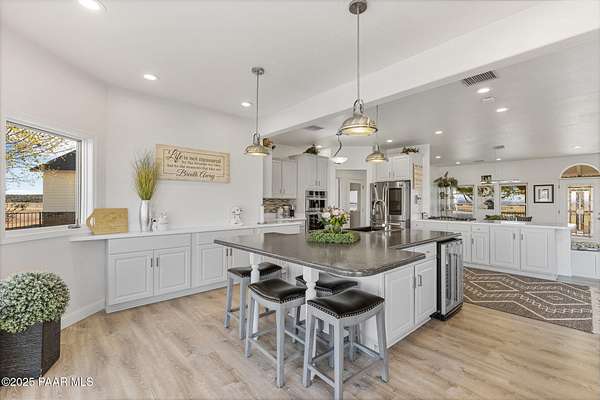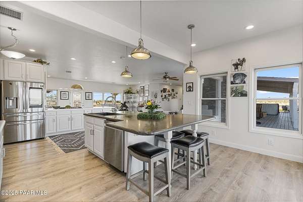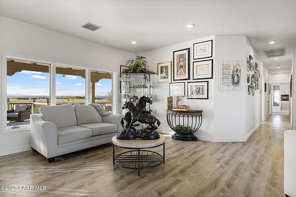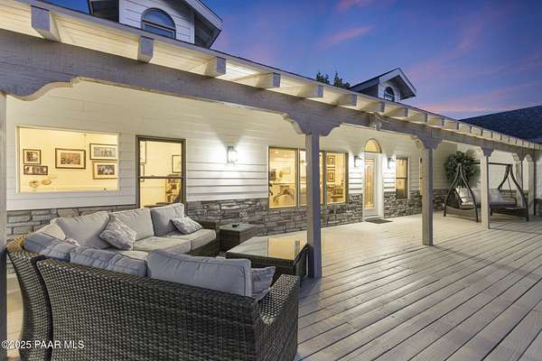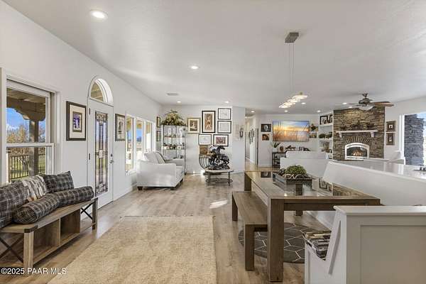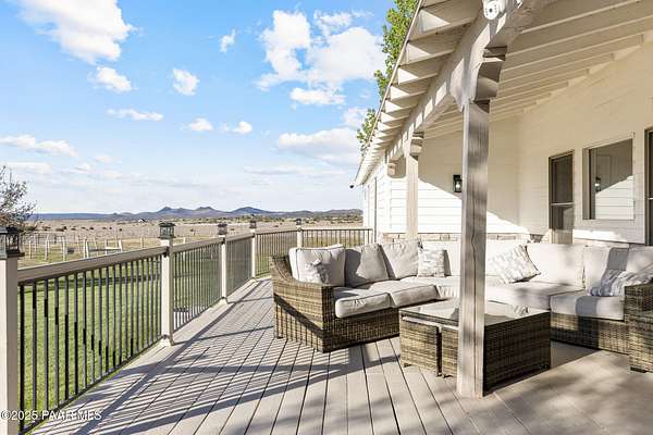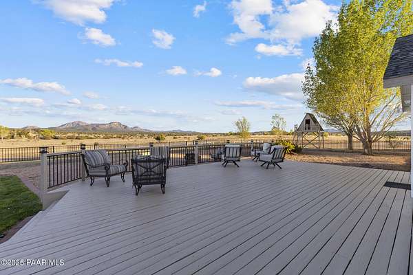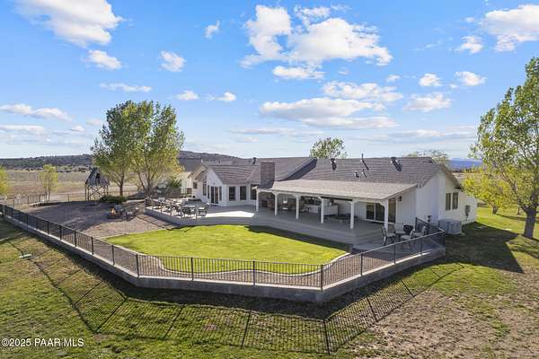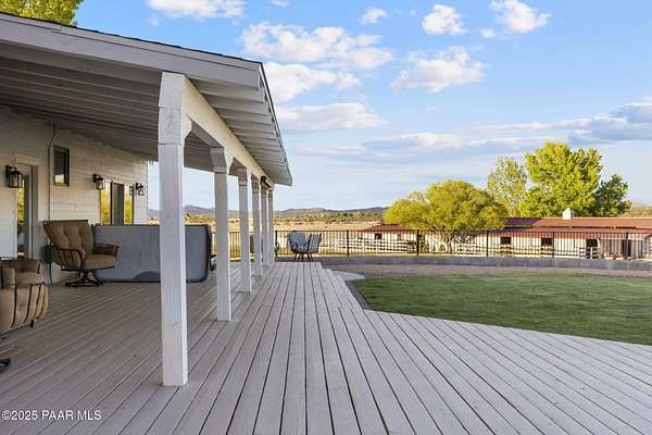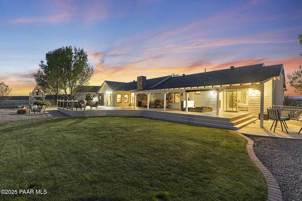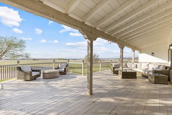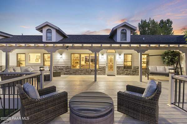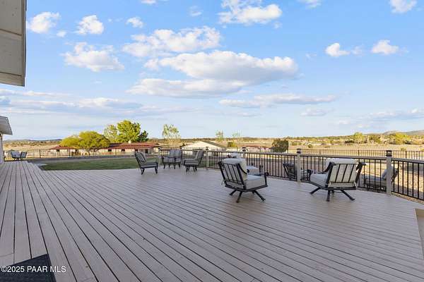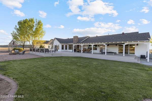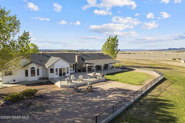 Welcome to Happy's Dream Ranch, an equestrian paradise just 25 miles from downtown Prescott. This stunning 36 acre property, nestled in Long Meadow Ranch, features a beautifully designed 3,586 sf modern farmhouse that perfectly blends warmth & elegance. For equestrian enthusiasts, this property is a dream come true: a 12-stall main barn equipped w/ generous 12x12 & 12x16 stalls, complete w/ runs, two spacious tack rooms, wash racks, & a convenient fly spray system to keep your horses comfortable. Additionally, there's a lower barn w/ 8 more stalls offering the same features for your equine companions. The property also includes a hay barn w/ a bunkhouse and a cozy tiny home for guests or caretakers. With perimeter & cross fencing, you can ride confidently in the 120 x 240 arena & more...