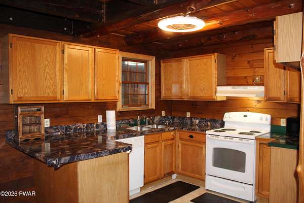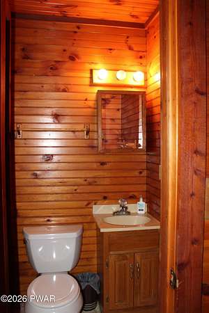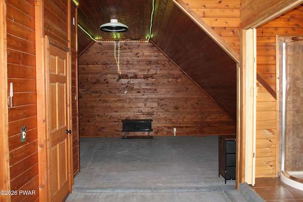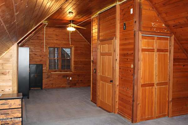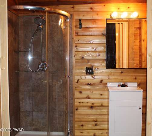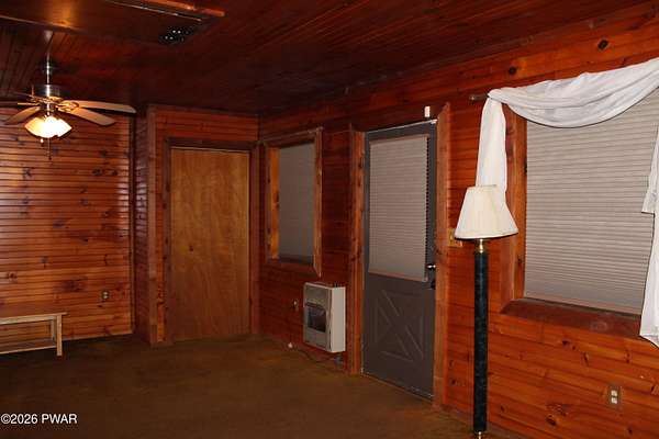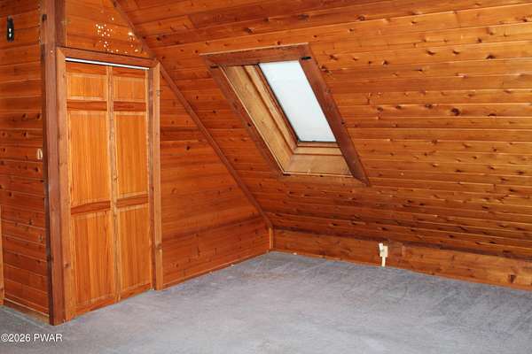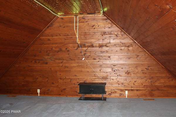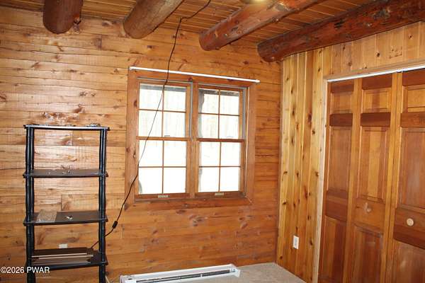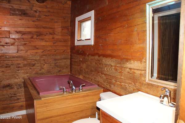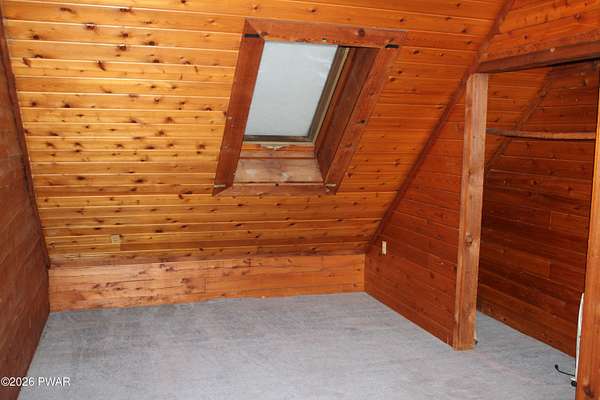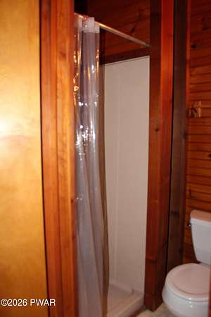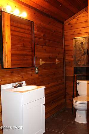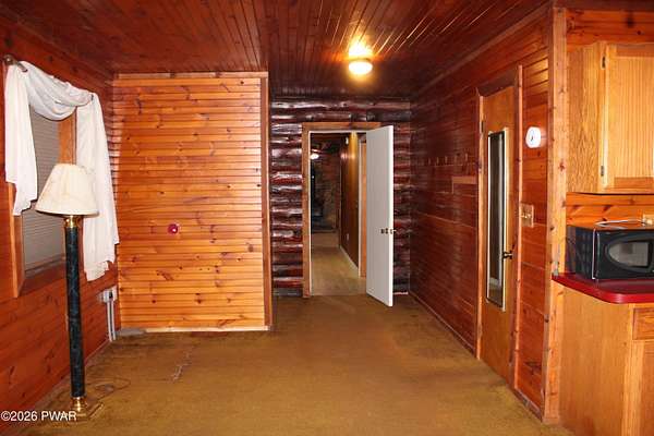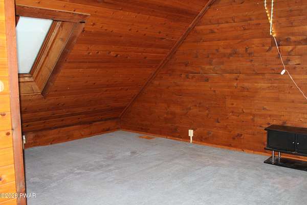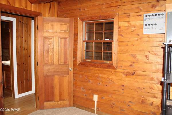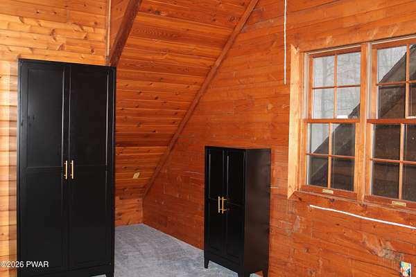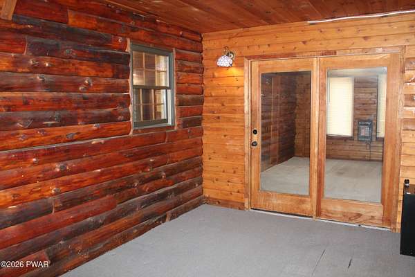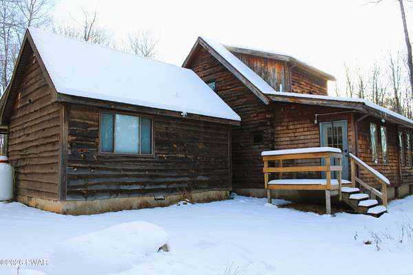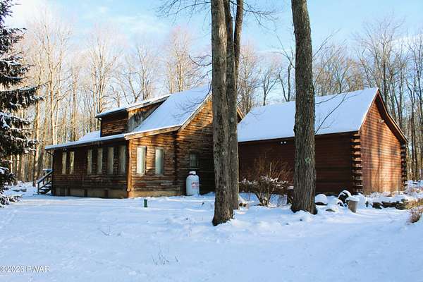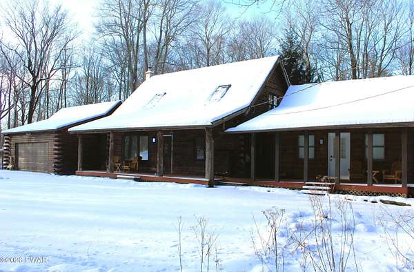 Log home on 5 acres in Whitetail Ridge...long driveway meanders to the log home set in the woods...large living room with wood stove and propane fireplace, open kitchen, dining area, den, bedroom, main bathroom with laundry, guest quarters with kitchenette, bathroom and outside entrance...all on the main level...upstairs features the primary bedroom and bathroom...beautiful covered porch across the front of the house and guest quarters...an attached 2-car garage...Wallenpaupack Area School District...Tenant pays utilities and must sign a 12 month lease. No smoking and no pets.