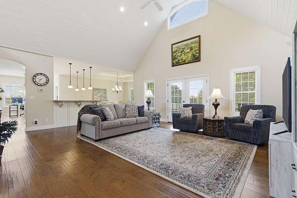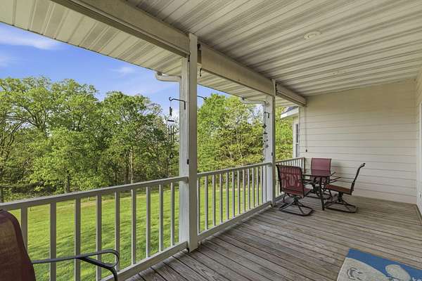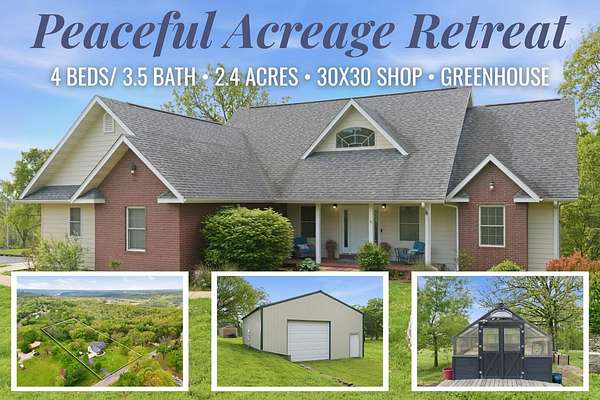 Welcome to 129 Bittersweet Lane in Forsyth, Missouri, where comfort, space, and peaceful acreage come together. Situated on 2.4 acres, this 4 bedroom, 3.5 bathroom home is ideal for buyers looking for a well appointed property with room to spread out both inside and out. A covered front porch invites you into a spacious living room featuring vaulted ceilings and an open, airy feel. The bright kitchen offers barstool seating, a center island, and flows seamlessly into the dining area with tray ceilings, along with a secondary space perfect for an office or additional dining. A large laundry room with abundant cabinet storage, a walk-in pantry, and a convenient powder room add everyday functionality. The primary bedroom features a decorative tray ceiling and an en-suite bathroom with dual sink vanity, jetted tub, and walk-in shower. The finished basement expands the living space with a second living room or recreation area, two additional bedrooms - one with en-suite bathroom, and additional full bathroom, a storage room, and a screened in patio for relaxing views of the property. Outside, the 30x30 shop includes electric, concrete floors, and one garage door, plus a greenhouse for gardening enthusiasts. Located near Shadow Rock Park and just a short drive to area lakes, this property offers the perfect blend of privacy, usability, and access to outdoor recreation.