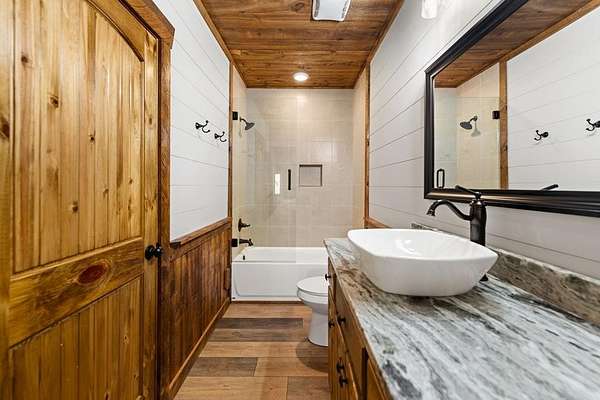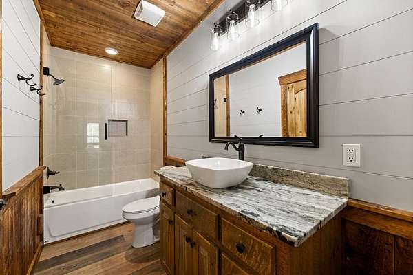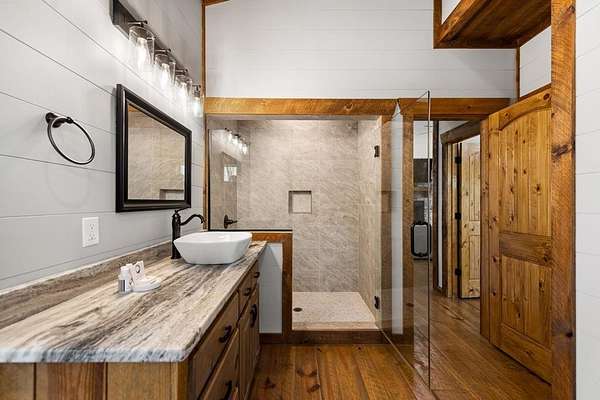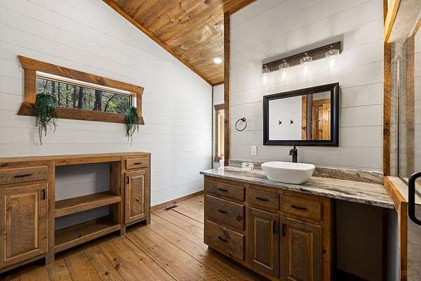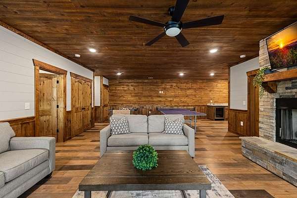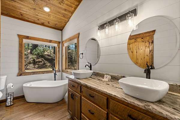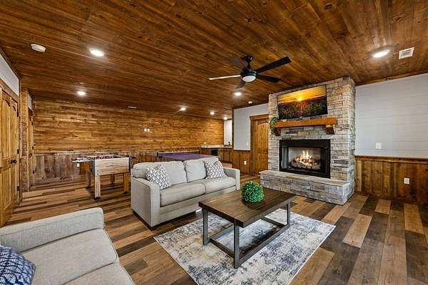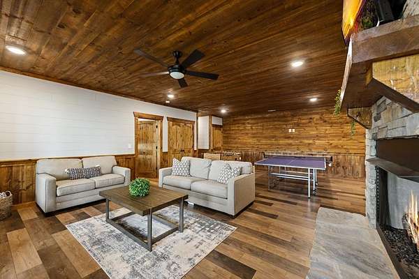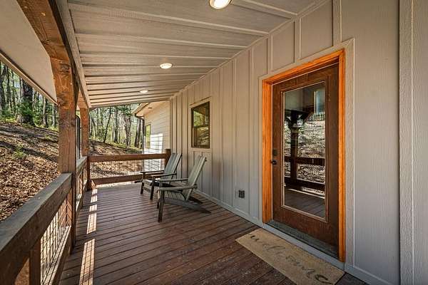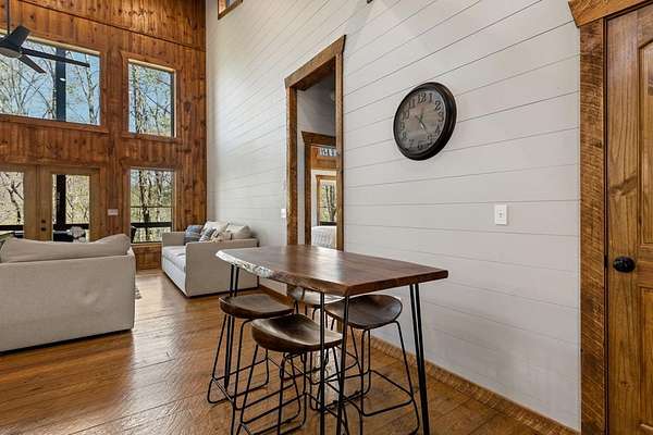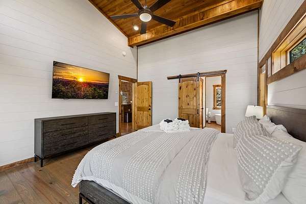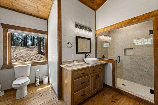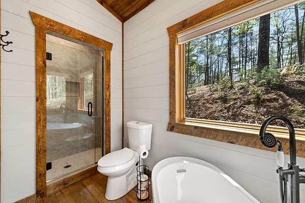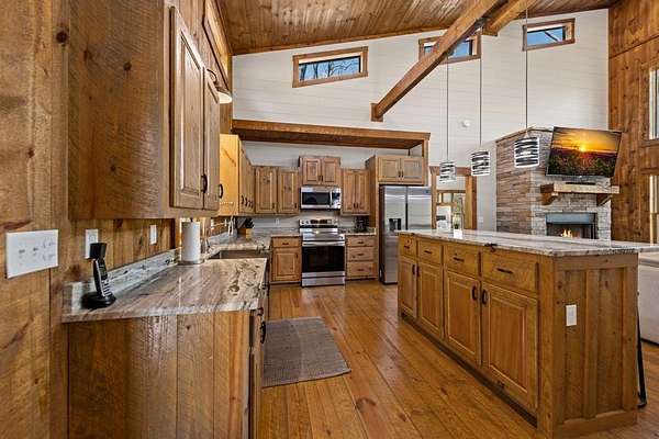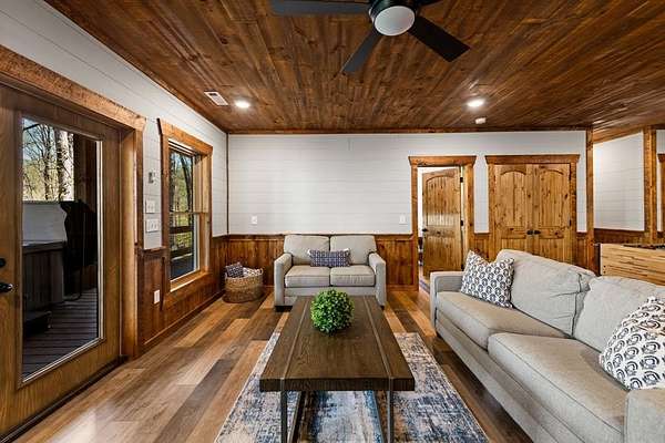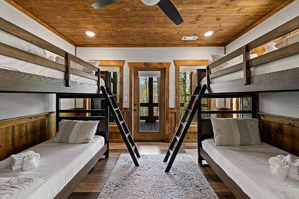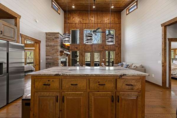 This rustic modern mountain cabin with seasonal mountain VIEW is the total package!Selling Turn Key FURNISHED—This 4 bedroom, 3 bath cabin has been lightly used and impeccably maintained, offering the rare opportunity to own a like-new home without the wait. Designed to impress the open-concept floor plan features wide plank wood floors, soaring cathedral ceiling and dramatic wall of windows that floods the great room with natural light while framing the mountain view. With 3 king-size bedrooms plus a fun bunk room, there's plenty of space to comfortably sleep 10, making it ideal for hosting family and friends or maximizing rental potential. Two luxurious ensuites on the main level offer convenience and privacy, while two full levels of living provide room to spread out and unwind. The finished terrace level is an entertainer's dream with a spacious family / recreation room complete with a wet bar—perfect for game nights and gathering after a day of adventure. Step outside and experience true mountain living with two levels of covered porches, each featuring its own outdoor fireplace, creating the perfect setting for year-round enjoyment. Relax in the hot tub, gather around the firepit, and soak in the peaceful surroundings. Located in the highly sought-after Cherry Log area, conveniently positioned between Ellijay and Blue Ridge, you're just minutes from favorites like Roo Mountain Vineyards, Bear Claw Vineyards, Cress Creek Farm, and endless outdoor adventures including hiking the Benton MacKaye Trail, mountain biking, and horseback riding. And unlike many mountain homes, this one offers EASY access with no steep or scary driveway and plenty of parking—a rare and valuable feature for both everyday living and guests. Whether you're looking for a private mountain escape, a full-time residence, or an income-producing investment, this stunning cabin delivers the lifestyle—and memories—you've been dreaming of.