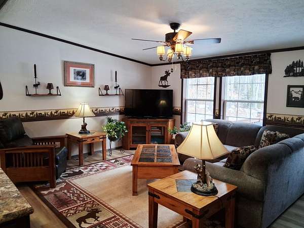 Est $2,285/moCustom Double Wide Manufactured Home with many Upgrades throughout. Brand new vinyl plank flooring throughout, new water heater, upgraded faucets, insulated self venting skirting. Open concept living at it's best with large kitchen island and full pantry, master bedroom suite with tiled walk-in shower, 2 additional bedrooms, second full bath and a laundry room. Enjoy the peace and serenity on the back deck. Sitting on 2.38 acres with established driveway, flower beds and Pleasant Mt views. Just minutes away from skiing, Fryeburg village, sought after Fryeburg Academy school district and tax free shopping in N.H.