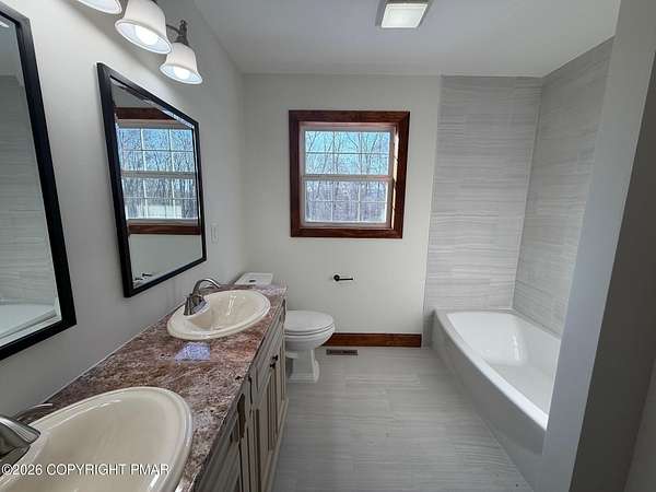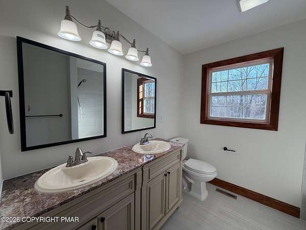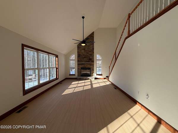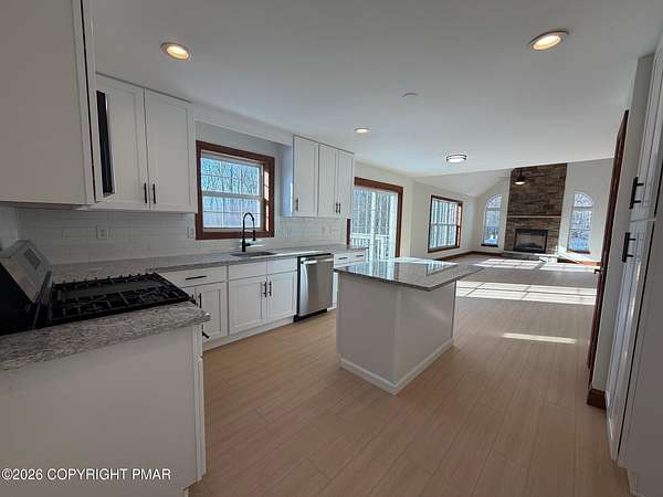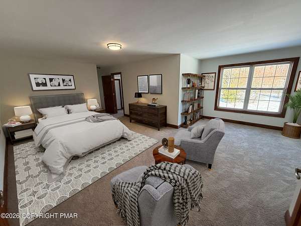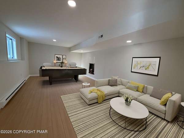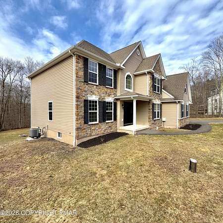 Set within the desirable Fawn Ridge Estates community, this extensively renovated residence offers exceptional space, flexibility, and comfort on a beautifully sized lot of over two acres. The home originally featured four bedrooms and two full baths on the second level, along with a thoughtfully designed first floor that includes a formal living room, family room, dining room, den, and an attached two-car garage. A fully finished lower level dramatically expands the living space, adding a full bathroom with a large walk-in shower and two additional rooms ideal for bedrooms, home offices, playrooms, or multi-use living areas. With over 4,300 square feet of finished living space, the layout easily accommodates growing or multi-generational households. The home has been upgraded throughout with modern finishes including 42-inch cabinetry, updated appliances, new flooring, and refreshed bathrooms, while generously sized bedrooms provide comfort and privacy. Outdoor living is equally impressive, highlighted by a two-story deck and a Finnish-style sauna designed to comfortably accommodate four or more people-perfect for relaxation and entertaining. Located in a highly sought-after area with convenient access to Route 80, Pocono Raceway, schools, shopping, and everyday amenities, this property offers a rare blend of space, updates, and location in a community that continues to attract long-term homeowners. NOTE: To help visualize this home's floor plan and to highlight its potential, virtual furnishings may have been added to photos found in this listing.