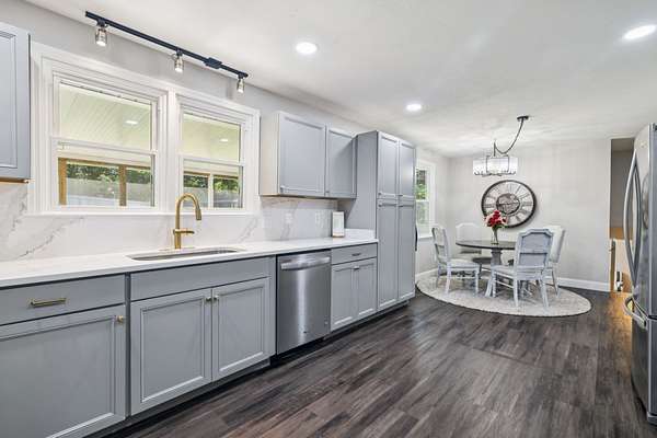 Welcome Home to this wonderful split level home sitting on just over 3 acres and is nestled within a wonderful community! This 1974 sf home consists of 4 bedrooms, 2 bathrooms, family room, bonus room with fireplace, upgraded kitchen with quartz countertops, beautiful fixtures and stainless steel appliances. Kitchen is open to the dining room adorned with an upgraded ceiling light fixture. When you enter this home into the living room space, you'll notice the updated flooring, ceiling fan light fixture, and recessed lighting. Downstairs is the family room/bonus room, one of the bedrooms, as well as a bathroom with laundry. Upstairs there are three additional bedrooms and one full bathroom. The brand new HVAC system installed keeps the home nice and cool in the summer and warm in the winters. Upgraded tankless water heater, new carpeting. The crawlspace has been upgraded with spray foam encapsulation and with an added dehumidifier. For added convenience, there is a two car attached garage with direct access to the home. The private fenced in yard is perfect for any buyer whether enjoying quiet privacy, room for animals, family gatherings and more. Screened in patio space allows for enjoyment in many ways. There is an additional detached one car garage/shop with electrical great for lawn car tools OR a hobby room OR home office OR anything you'd like to use it for. With the newer dual pane windows it helps with energy efficiency. Come visit this home today.