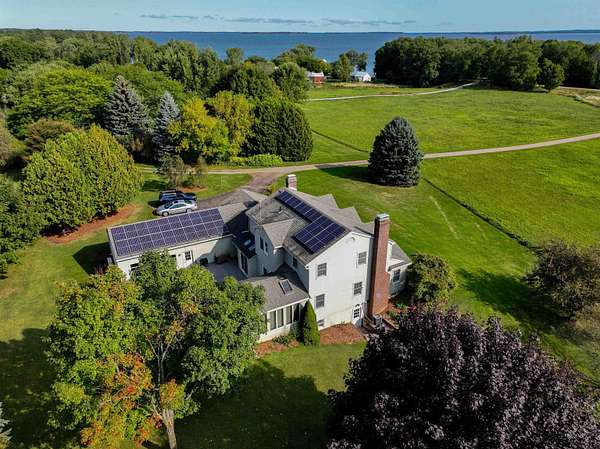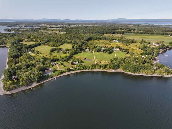 Discover your perfect year-round retreat on Lake Champlain with this exceptional 10-acre property boasting 210 feet of pristine lake frontage. This solid, well-built colonial home offers deep water access to the stunning "Inland Sea," ideal for boating and waterfront enjoyment. Surrounded by mature, well-spaced trees, the expansive grounds provide ample space for outdoor fun and games and gardens. Inside, experience comfortable living with wood and tile floors throughout, sun filled living room featuring a wood fireplace, and a family room warmed by a wood stove nestled alongside custom built-in bookcases. The west facing sunroom gives you another place to relax. The central air conditioning ensures year-round comfort. Car enthusiasts and hobbyists will appreciate the 2-car attached garage and a climate-controlled 650 sq ft workshop with its own garage door—perfect for projects or storage. A spacious pole barn with large sliding doors completes the ensemble, ready to house all your equipment. Wake up to breathtaking sunrises on the covered front porch, and benefit from versatile spaces like the expansive laundry room/office/studio on the second floor. This exceptional property combines tranquil lakeside living with practical amenities for your lifestyle. Don’t miss the opportunity to call this Lake Champlain gem your new home!