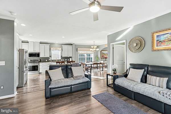 - Carpet, Ceiling Fan(s), Chair Railings, Crown Moldings, Entry Level Bedroom, Family Room Off Kitchen, Gourmet Kitchen, Open Floor Plan, Pantry, Recessed Lighting, Soaking Tub Bathroom, Upgraded Countertops, Walk-In Closet(s), Walk-In Shower Bathroom, Window Treatments, Wood Floors