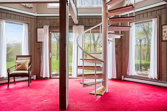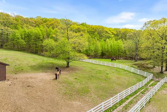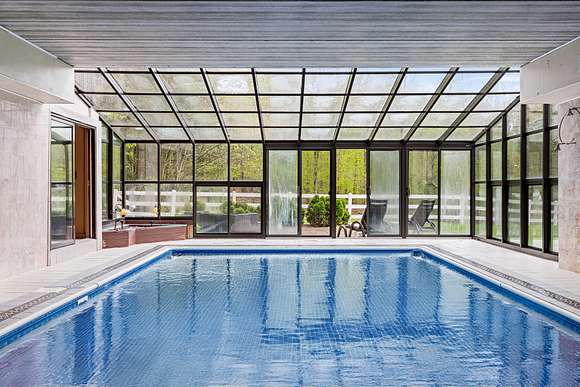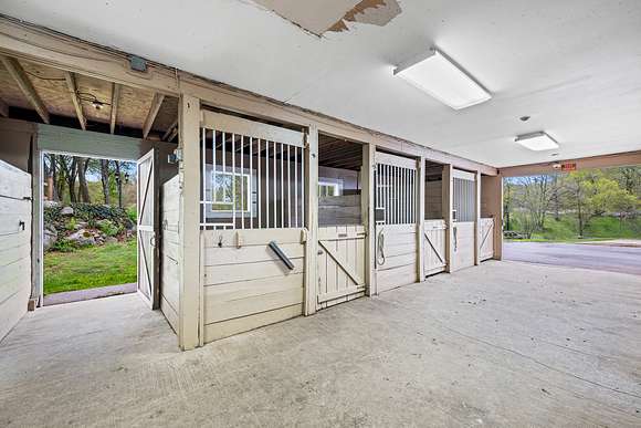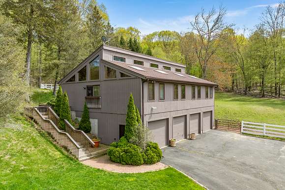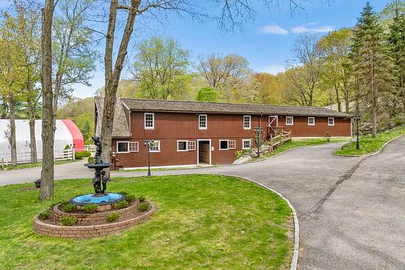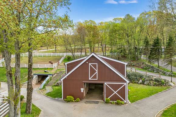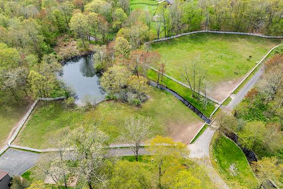 This breathtaking Newtown Estate showcases on 30 acres of lushly landscaped property with a private 1-acre swim pond, connecting to the Pootatuck River, which runs through the property creating a peaceful setting. This is a hidden sanctuary that offers luxury, comfort and unparalleled privacy. The serene drive through the gates leads to 5000 square feet of Main House with a 3-car garage, 10 rooms with high elevated cathedral ceilings, MAJESTIC FIREPLACE, 4 bedrooms and 4 1/2 baths plus a beautiful heated INDOOR SWIMMING POOL with sauna and hot tub/spa room. The grounds also include a spacious 1800sq. ft. Guest House which offers 3 bedrooms and 1 1/2 baths, high ceilings, hardwood floors throughout with custom carved wooden doors and an additional 4-car attached garage. The Equestrian facilities offers a complete working HORSE FARM! 2 separate barns totaling 25 stalls. The first barn features 8 matted stalls with wash stall, tack room and feed room on the lower level; the upper level offers 7 matted stalls, hayloft, hay drop, bathroom and gathering room. The second barn offers 11 stalls, 2 tack rooms, feed room and storage shed; there also is a manure pad that can also be used for tractor storage when not in use. There is sand riding ring and additional grass riding ring, 13 grass paddocks which are between 1 and 2 acres in size, riding trails, a 4 horse run-in shed. HELIPAD ALLOWED! A truly unique and spectacular property!