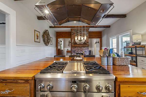 - Beamed Ceilings, Ceiling Fan(s), Entrance Foyer, High Ceilings, Kitchen Island, Pantry, Primary Downstairs, Walk-In Closet(s)