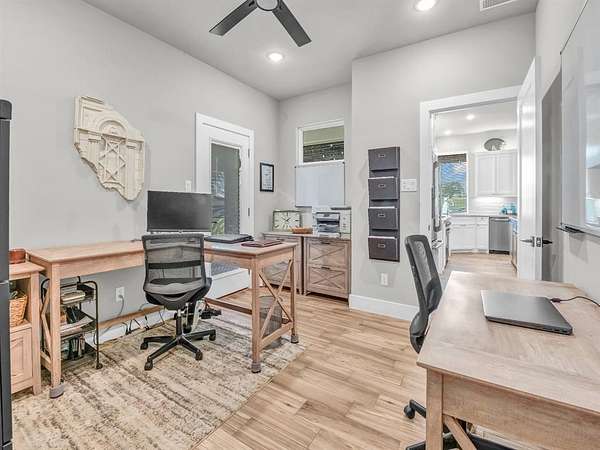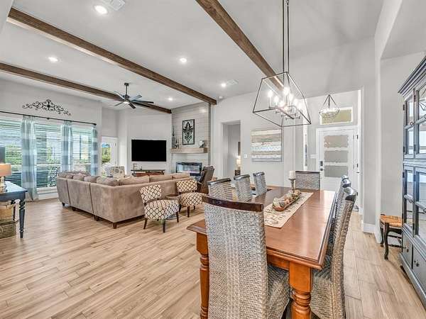 This one-of-a-kind property offers the perfect blend of luxury, space, and flexibility for multigenerational living. Nestled on 2 acres, the main home boasts 2,653 sq ft of beautifully designed living space with a modern farmhouse vibe, including 4 spacious bedrooms, 2.5 bathrooms, an office, and a playroom. Enjoy a stunning open-concept layout featuring a chef's kitchen with custom cabinetry, a wood-burning fireplace with floor-to-ceiling stonework, and walk-in closets in every bedroom. The large, covered patio with a fireplace and adjacent pergola, with dining and kitchen accommodations makes outdoor living a breeze. Main home has an attached 4 car garage with 9' ceilings one space with an 11' ceiling, large enough for a boat.