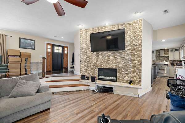 GREAT OPPORTUNITY!With a little TLC this large 3 bedroom 2 bath home in Ozark will be a Stunner. This uniquely designed home boasts over 2,300 sq ft. Inside offers an electric fireplace in the living room., The kitchen has a large island, stainless steel appliances, an indoor wood burning grill, and coffee nook. The main suite has a large bathroom with a jetted tub and a walk-in shower. Outside includes 1.8 acres on a corner lot that is partially fenced with a back patio and a firepit.