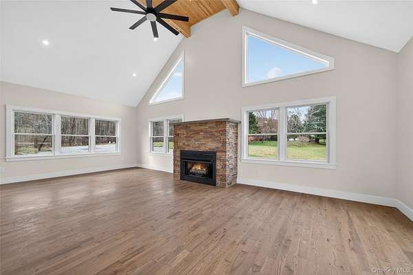 New Construction | Private Mountain Chalet | Catskills Welcome to your Catskills sanctuary. Nestled on 5.85 private acres of forested mountain landscape, this stunning brand-new chalet-style retreat delivers the rare combination of refined luxury, natural beauty, and complete seclusion - all within reach of the region's most beloved destinations. From the moment you arrive, breathtaking mountain views, the gentle sound of a brook, and inspired design set the tone. Inside, soaring cathedral ceilings and floor-to-ceiling Andersen windows flood the great room with natural light, framing the surrounding scenery like living artwork. A fireplace anchors the space, while sliding glass doors open to a full-length deck - perfect for entertaining or quiet morning coffee. The open-concept kitchen features stainless steel appliances, quartz countertops, and a smart layout that flows into the living and dining areas. Select-grade red oak hardwood floors add warmth and elegance throughout the main level. The primary suite offers private deck access, a walk-in closet, and a spa-inspired bath with a double vanity and tiled walk-in shower. A second bath features a soaking tub for ultimate relaxation. All bathrooms are finished with floor-to-ceiling tile and black oil-rubbed fixtures. The walk-out basement expands the living experience with large windows, a full bath, and direct yard access - and the builder is offering full customization to match your vision. Home theater, wine cellar, gym, in-law suite - design it from the ground up, exactly as you want it. Additional highlights include a 24kW auto-start Generac generator, whole-house water filtration, tankless water heating, a firepit, and abundant parking. Minutes from Callicoon, the Delaware River, Bethel Woods Center for the Arts, and Jeffersonville - elevated Catskills living at its finest. 3 Beds | 3 Baths | 3,000 Sq Ft | 5.85 Acres | New Construction