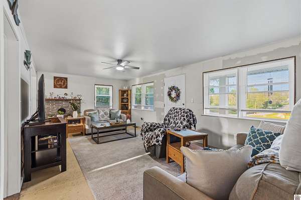 Est $1,079/moVery Pretty Hilltop Cabin home with basement. This home sits on 3 acres 3 Bed 1.5 baths. This home has the majority of work completed completed in a re-model. New windows, doors, storm doors (with warranties). New Roof less than three years. Needs finish work on some areas for wall painting and finish flooring. Spacious Workshop with concrete flooring & utilities for plenty of lawn storage and more.