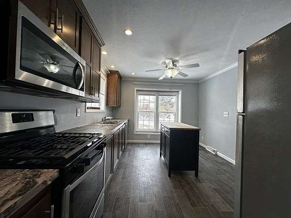 Beautiful 2021 Mobile Home - Move-In ReadyThis turn-key 2021 home offers 2-3 bedrooms (or optional office/den) with modern finishes throughout. Open living space features vinyl plank flooring, easy-care kitchen vinyl, and new plush carpet in two bedrooms. Neutral tones create a bright, welcoming atmosphere.The kitchen includes 42" cabinets, stainless steel appliances, gas range, microwave, dishwasher, and ample storage. Mudroom with laundry hookups adds convenience. Primary suite has private bath with walk-in shower; second bath offers tub/shower. Propane heat and central AC provide year-round comfort.Enjoy a covered porch, corner lot, vinyl siding, cement pad foundation, tie-downs, and 3 parking spaces. Located in a well-managed co-op park with low fees covering road plowing and tree removal.24' x 48' | 2-3 Beds | 2 Baths | Central AC | Covered PorchMove-in ready-schedule your showing today!