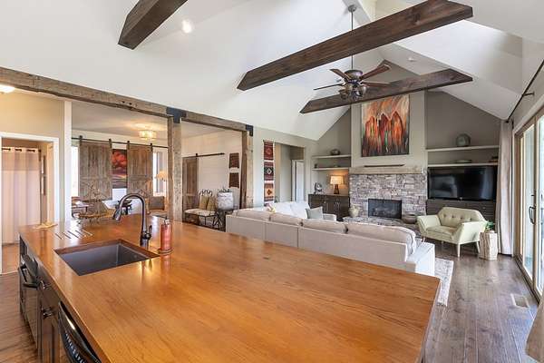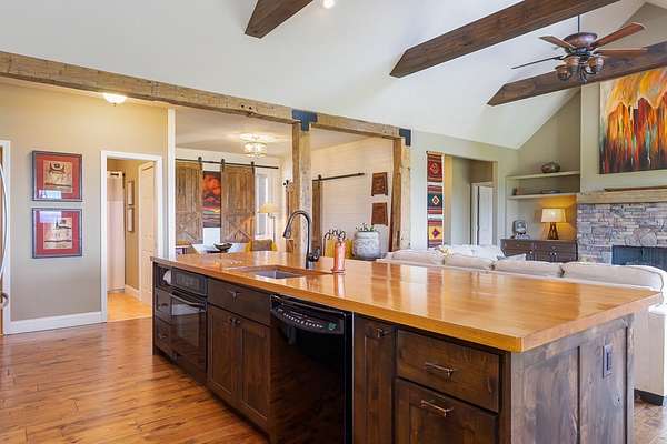 - Bonus Room, Breakfast Bar, Cathedral/Vaulted Ceiling, Ceiling Fans, Cell Service Available, Garage Door Opener, Great Room, In-Law Quarters, Kitchen/Dining Room, Large Master Bedroom, Main Level Living, New Kitchen, Open Floor Plan, Primary On Main Level, Primary W/Ensuite, Split Bedroom, Walk-In Closets