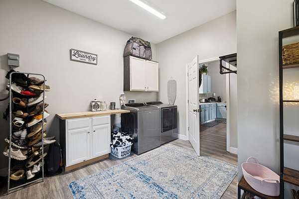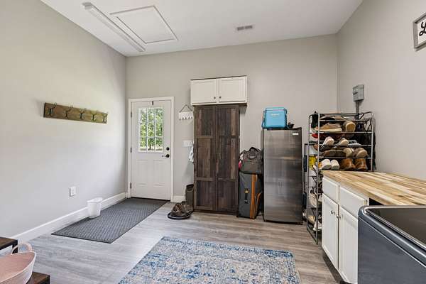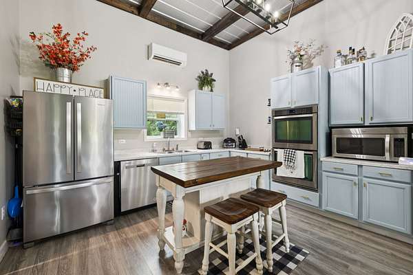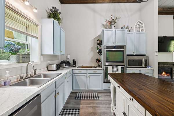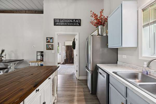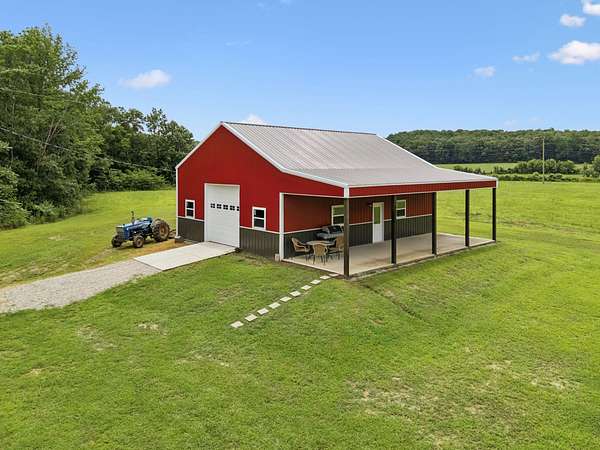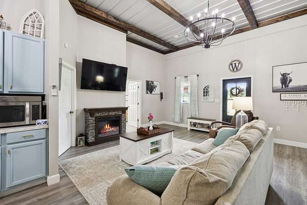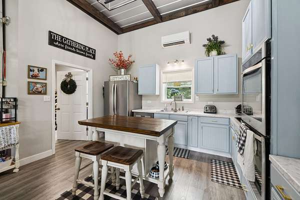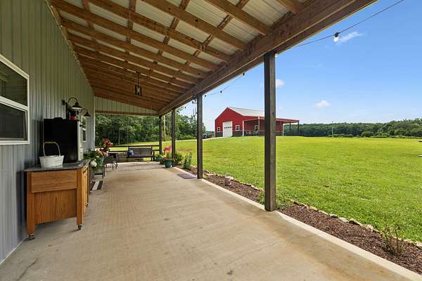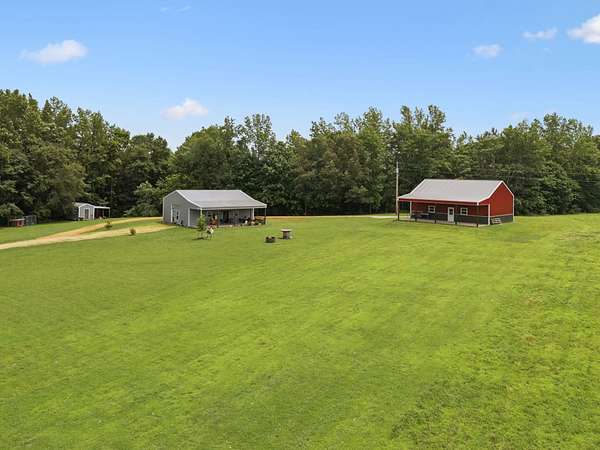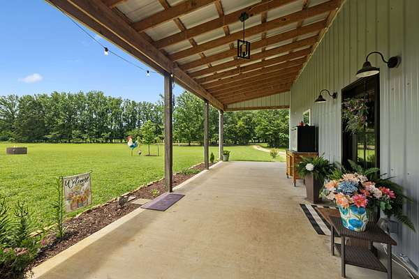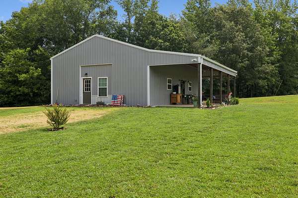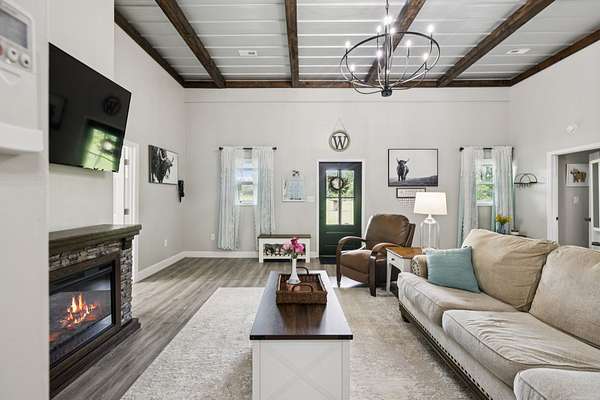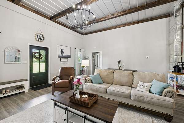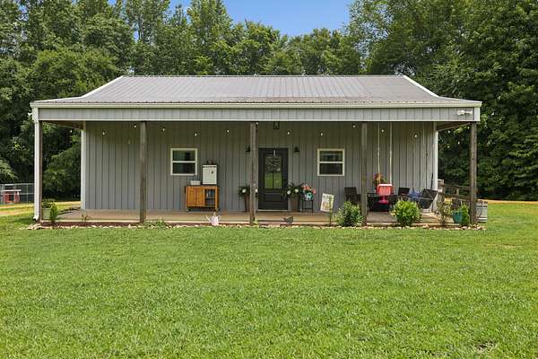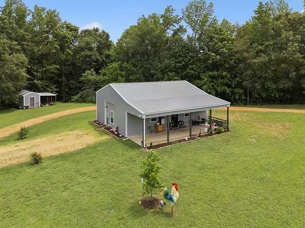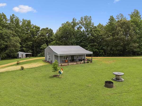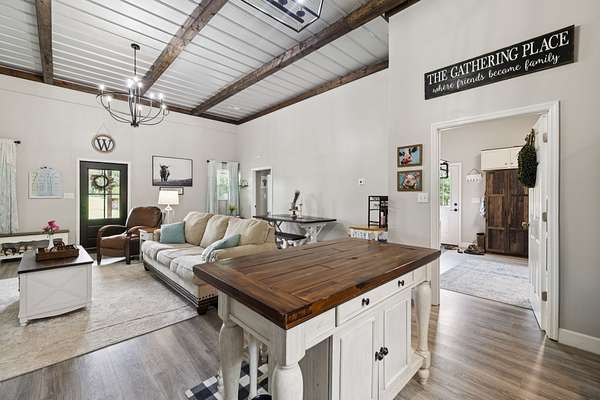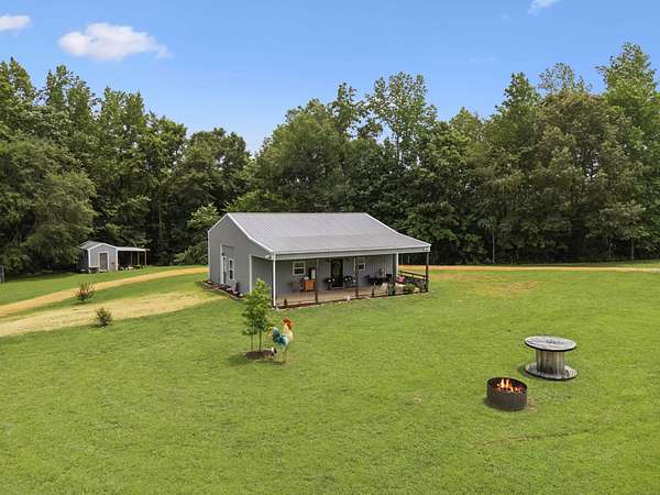 Main Home Highlights: 12+ ft ceilings, open floor plan, and a wide front porch perfect for rocking chairs and sweet tea.The kitchen features pretty painted cabinets, double ovens, and an abundance of natural light. A spacious 13x13 mudroom offers a practical and welcoming entrance after a day on the land.Split bedroom plan. 2nd Living Space potential: Rough-in plumbing and electric already installed & Large covered front porch