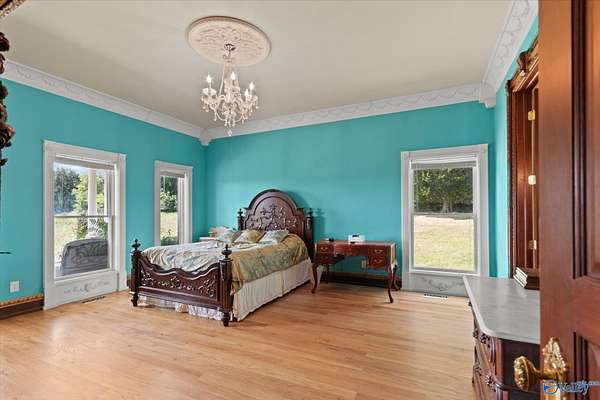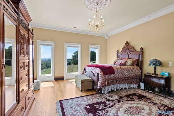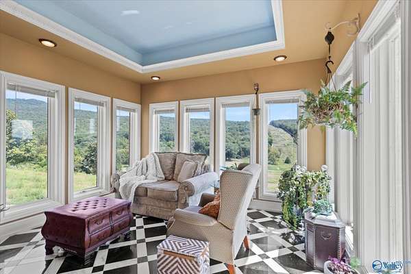 You Can't See What Awaits Until You Come Inside The Gates! This custom-built, 6,100+ sq ft home on 14.4 secluded acres offers unparalleled privacy and breathtaking mountain views, yet it's an easy commute to Redstone Arsenal or Cummings Research Park. The home features 5 bedrooms, including a main-level master suite, a large finished basement with a 3 car garage, and 4 fireplaces. Built with superior 2x6 construction, 10' ceilings, and 8' doors, quality is evident throughout. Enjoy stunning vistas from the front porch or the second-floor deck. This is the ultimate escape to unwind and recharge after a busy day. Adjoining 25+ Acre Tract 2 and 41+ Tract 3 available for sale in separate listing