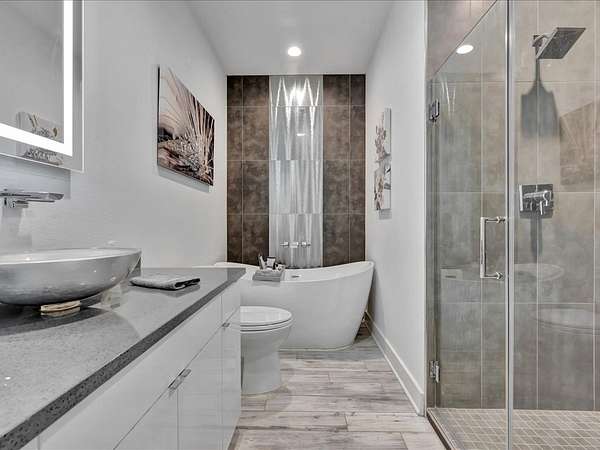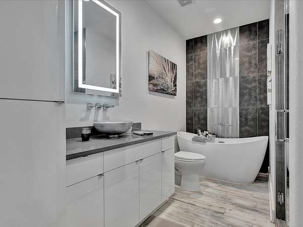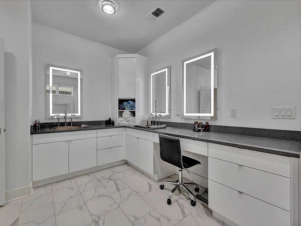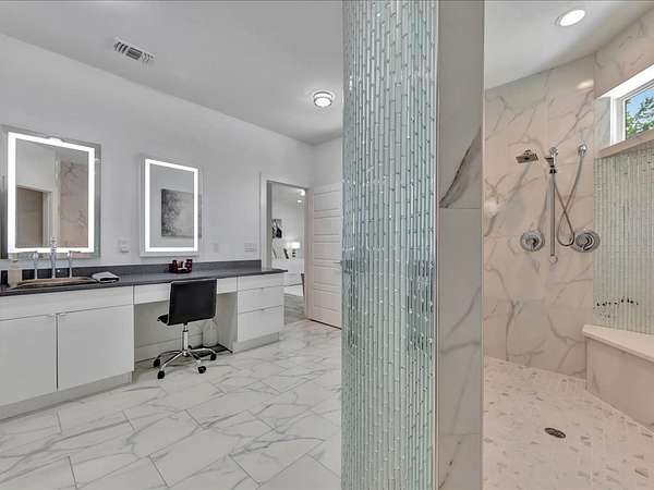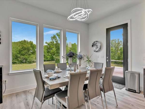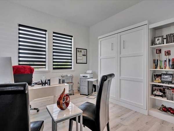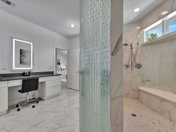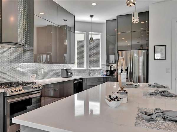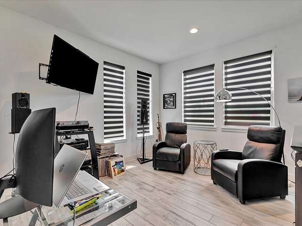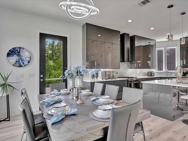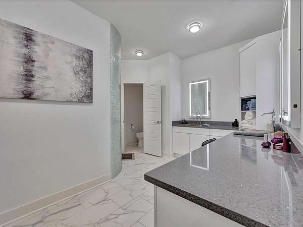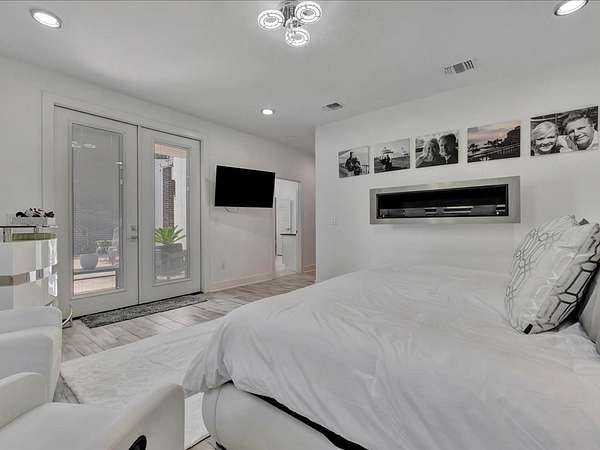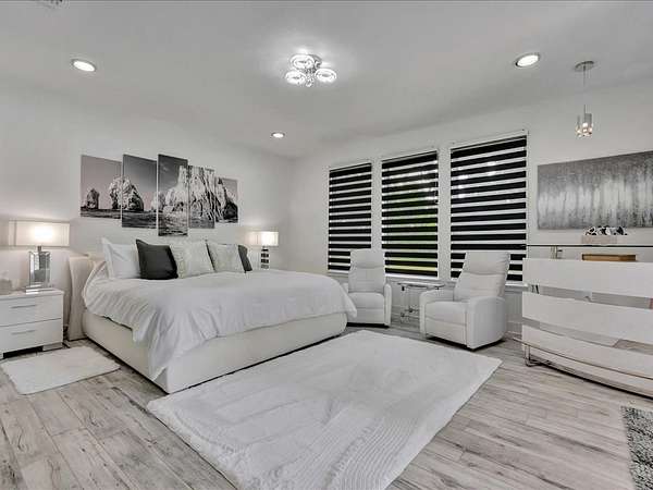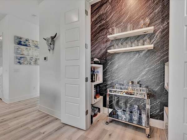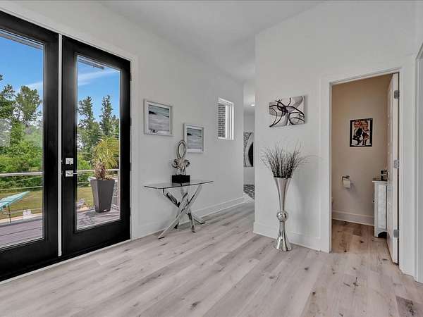 This one-owner custom modern home on 2.61 acres offers luxury living with designer finishes and high-end upgrades throughout. The main level features a serene primary suite with a spa-style shower wrapped in Ice Castle tile, plus two guest bedrooms for convenient first-floor living. The open-concept gourmet kitchen boasts European high-gloss cabinets, quartz countertops, Ice Castle backsplash, a large island with bar seating, and a walk-in pantry—perfect for entertaining. The living room is highlighted by a sleek fireplace accented with Italian tile. Upstairs includes a flexible bedroom or office and multiple balconies, while the third-floor rooftop terrace provides stunning panoramic views. Step outside to a resort-style pool, a fully equipped outdoor kitchen, and a poolside half bath. With marble stairs, beautiful tile floors, and abundant natural light, this home blends modern design, comfort, and seamless indoor-outdoor living.