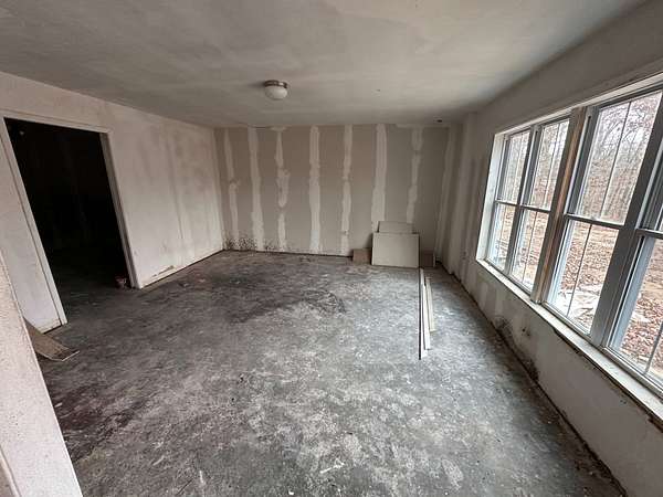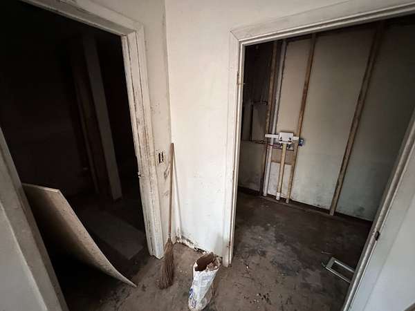 Outside, there is a concrete area in front of the structure, providing a great spot to park a camper or RV while working on renovations. City water and electric are already on the property.