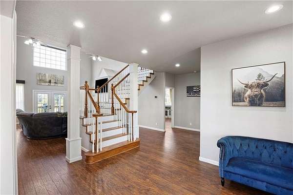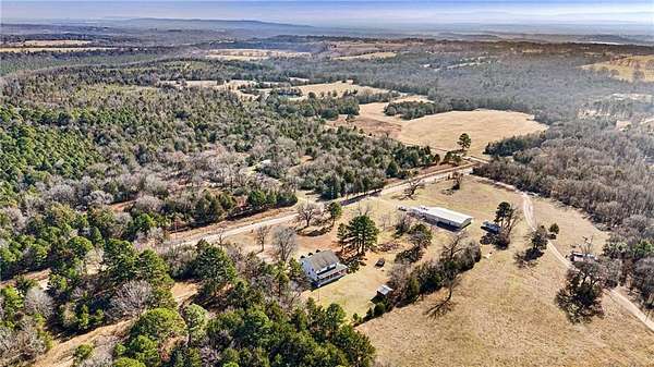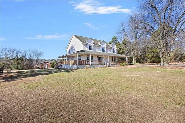 Welcome to the kind of country home buyers dream about. Set on 2.35 acres in a peaceful Hartman setting just minutes from Clarksville, this spacious two story retreat delivers the serenity you want with the room you need. A covered wraparound porch circles the home, perfect for morning coffee and evening sunsets. Inside, soaring cathedral ceilings, abundant windows, & a cozy fireplace anchor the living room and create a warm, inviting space. The modern kitchen offers extensive cabinet space, generous countertops, and double ovens that make cooking and hosting effortless. Natural light fills the home, enhancing the open, airy feel. The layout includes four large bedrooms, each with an oversized walk in closet. With three full bathrooms, generous living areas, and a winding staircase leading to the loft that adds character and flexibility, this home adapts easily to everyday living or entertaining. If you've been searching for a home acreage, privacy, and a price point that makes sense, this one checks all the boxes.