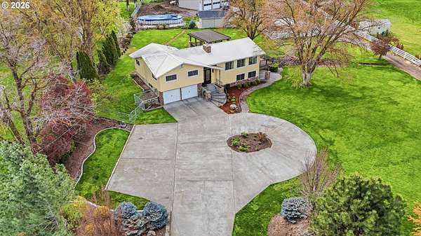 Some homes give you square footage. This one gives you space to live the way you want. Set behind mature trees with a wide circular driveway, this property immediately feels open and private. The backyard is fully fenced, and your evenings are meant to be spent under the covered patio. The separately fenced pool will create a summer hub for memories, laughter, and long warm nights. The 38'x42' shop is heated with three roll-up doors (two are automatic), a lean-too and ready for projects, toys, or business needs. A 20'x28' storage bldg is freshly sided, painted and roofed. Plus a 20'x18' metal awning to use as parking cover is included. Inside, the split-level layout creates natural separation while keeping everyone connected. The remodeled kitchen is built for gathering - gas stove, wall ovens, pantry - ready for holidays and everyday dinners alike. Bathrooms have been beautifully updated - Primary bath is brand new, never used! Downstairs offers a cozy family room with gas fireplace, a 4th bedroom with shiplap detail, and even a sauna for your own private reset. Homes with this much flexibility and outdoor space are hard to find. Schedule your private tour and see what life here could look like.