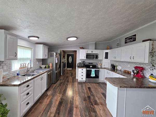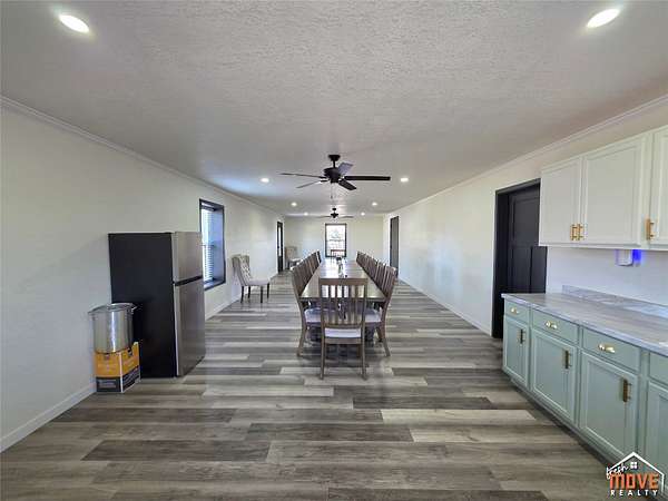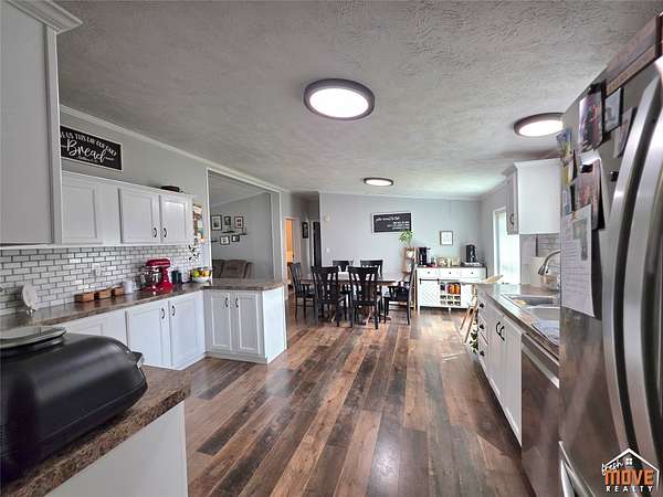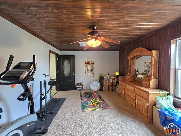 Situated on 2.5 acres just outside the city limits of Montezuma, KS, this 2001 home offers lots of space, upgrades, and functionality. The home features 3 bedrooms, 2 bathrooms, and an attached 2-car garage that is fully finished, along with a pantry and a large office or workout room just off the garage. The property is surrounded by mature trees and includes a full sprinkler system for easy maintenance. In addition to the home, you'll find an impressive 90x45 shop that is approx. 2 years old, complete with floor heat, excellent insulation, a large gathering room with its own kitchen, and a 3/4 bathroom, perfect for entertaining, projects, or business use. A 90x24 lean-to off the shop provides even more space for equipment or storage. A rare setup offering a move-in ready home and a highly functional outbuilding in a great location just outside town. Call today for more information.