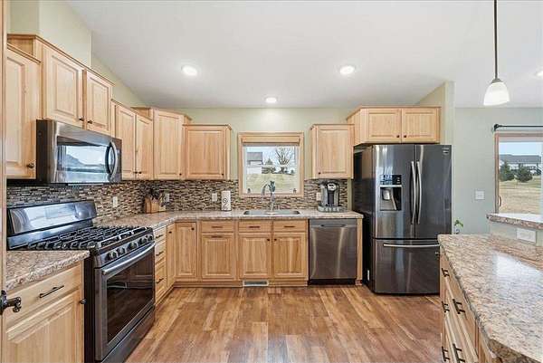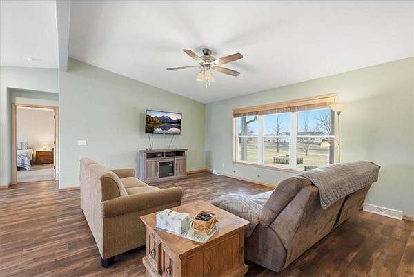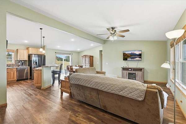 Nestled on more than 1.6 acres just outside of New Richmond, this beautiful one-level home offers the perfect combination of space, comfort, and peaceful surroundings. Step through the front door and you’ll immediately notice the bright and open feel of the main living area. The living room flows seamlessly into the dining area and kitchen, creating a welcoming layout that’s ideal for both everyday living and entertaining. The kitchen features stainless steel appliances, a center island, and plenty of space to gather.