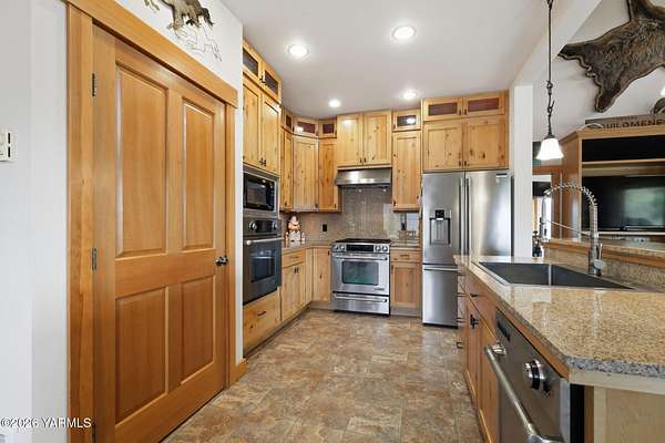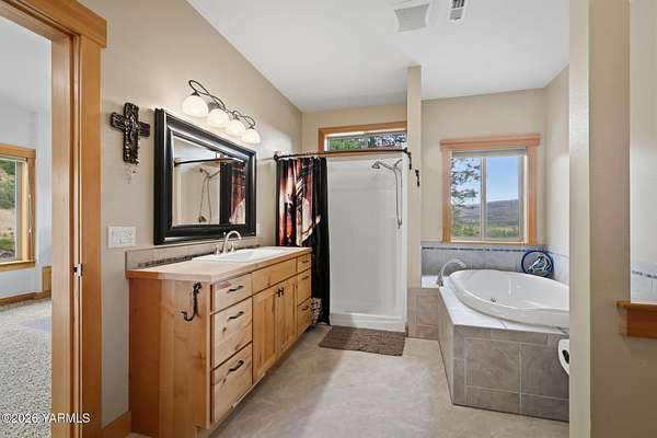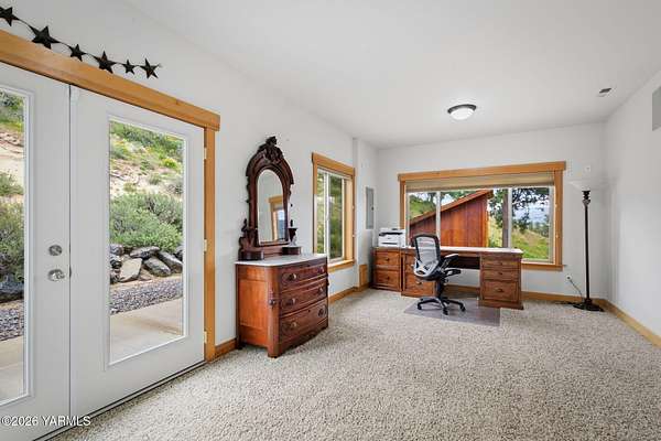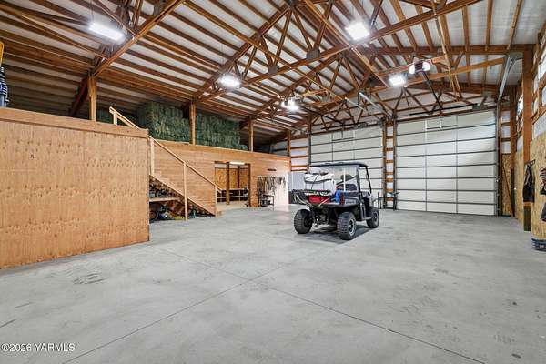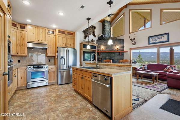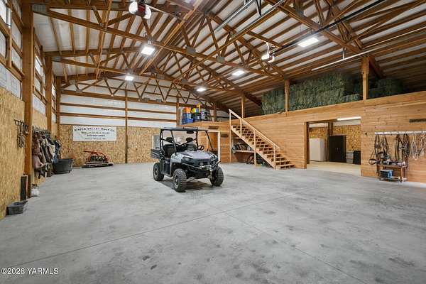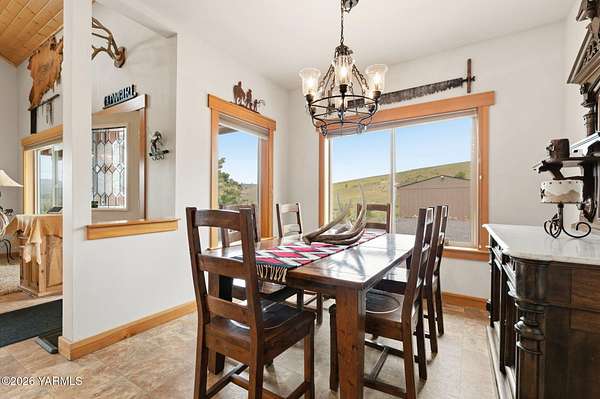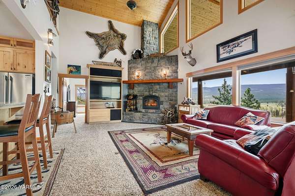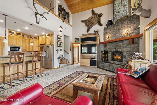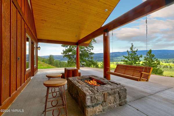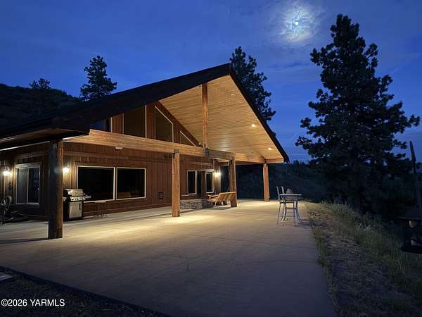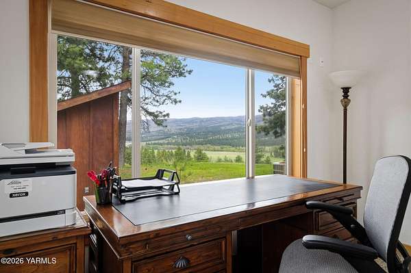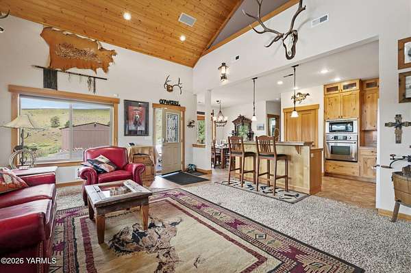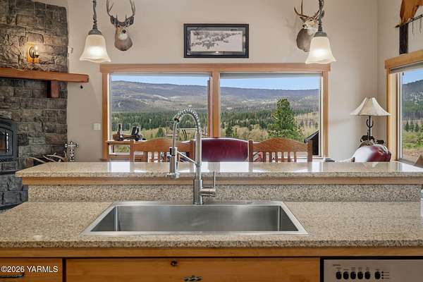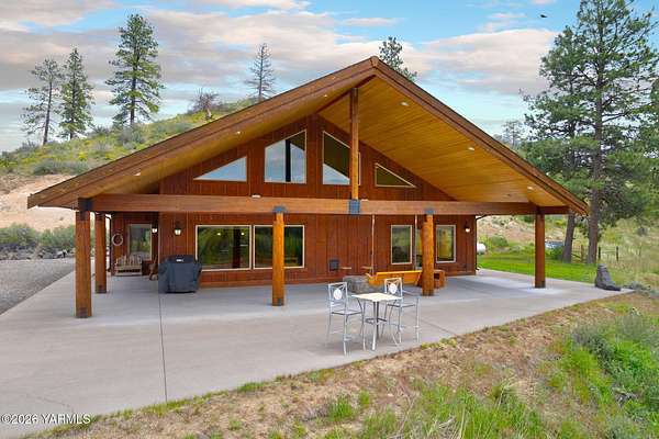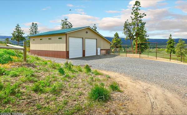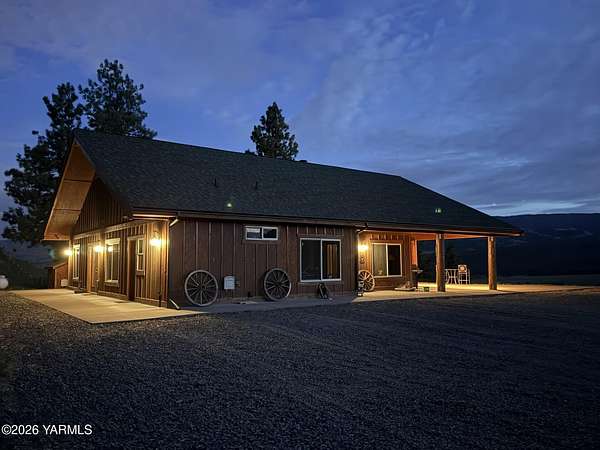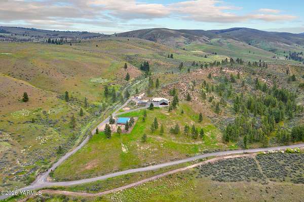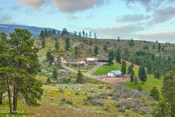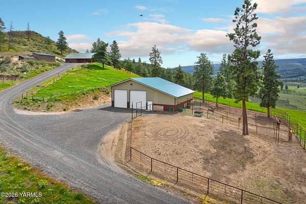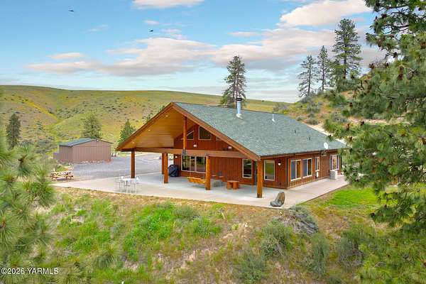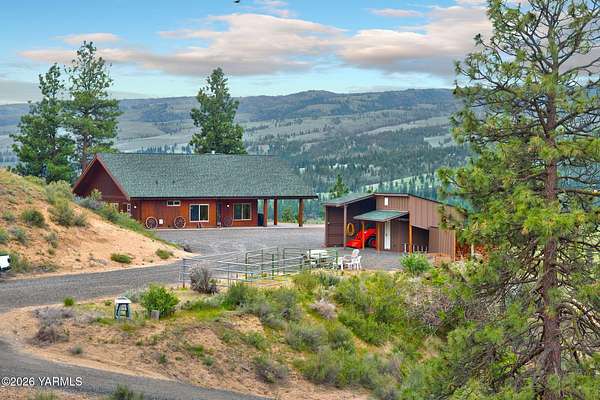 Where nature, comfort, and adventure meet--this property feels like a true luxury lodge retreat. Set on 10.85 acres with sweeping territorial, hillside, and valley views that stretch for miles, it offers the perfect blend of privacy, comfort, and accessibility. Vaulted ceilings, soaring timber lines, expansive windows, and a striking rock fireplace anchor the open living space, while the granite kitchen with island is designed for entertaining friends and family. The home features 2+ bedrooms, 2 bathrooms, a loft ideal for a 3rd bedroom or flexible living space, and a private study attached to the primary suite with exterior access--perfect for a home office, creative space, or quiet retreat. Step outside to the massive covered outdoor living area and take in the peaceful setting, wildlife, and mountain views that stop conversation mid-sentence. The 48x56 fully insulated shop sits on a 7-inch concrete slab with 200 amp underground service, 12x14 and 14x14 overhead doors, plus corrals built from welded steel pipe, a large fenced pasture adjacent to the barn, and a separate outbuilding for additional equipment storage. Bordering DNR land and located just minutes from Wenas Lake, Cascade Park, and BBQ Flats, this property captures the very best of Northwest living.