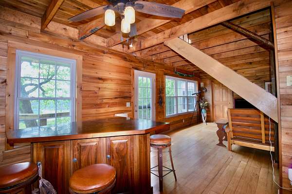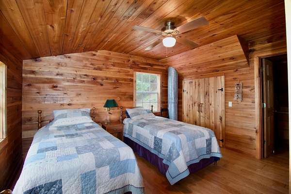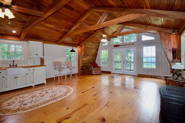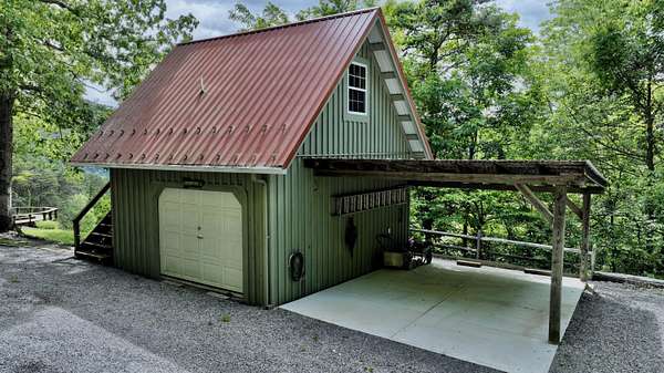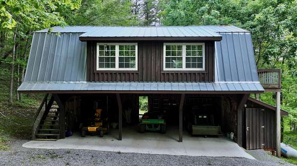 This unique property is situated on 68 +/- acres with approximately 20 open acres, two ponds, a pole barn, 3 stall barn, fenced in orchard. fenced in garden and a stream. The main cabin is charming. Living room and kitchen have an open concept layout. The kitchen boasts black walnut cabinets and granite countertops. The master bedroom bath and utility room are also located on the main floor. The upstairs has two bedrooms with large closets and an adjoining bath. A spectacular view of the Bluestone Lake can be seen from the large deck as well as other areas on the property. Additionally, there is a large studio apartment that is warm and inviting and includes a kitchen area, bath, loft, vaulted ceilings and a deck. Two other added features are a bunk house which has a bedroom and bath and a small log cabin that has one bedroom and a gas fireplace. There are two garages that are spacious and provide for ample storage of extra items. Plenty of wooded acreage for the avid hunter and established ATV trails for hiking or horseback riding. An Air B&B or VRBO might also be an option. The location is private yet easily accessible and conveniently located close to the New River Gorge National Park and Preserve and Interstate I-64 E and I-64 W.