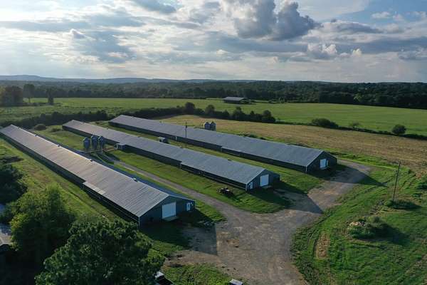 Hutchens Broiler Farm is a three house farm located in Blount County AL. The farm is contracted with Wayne Sanderson's Albertville Complex and consists of 2 40'x500' houses built in 2000 and 1 54'x500' house built in 2009. Situated on 19 +/- acres fronting County Highway 21 with a nice homesite with easy access to utilities. There have been several updates completed recently and there is possibly room to add one more house in the future. The farm operates on Natural Gas. Other Features are a Litter Shed, Compost Shed and Mortality Freezer which is currently used for mortality disposal. The seller will give a buyer a concession of $25,000 at closing to use toward any updates or adding a home to the property. The farm is well located near the Town of Snead just west of Boaz and within an hour or less of both