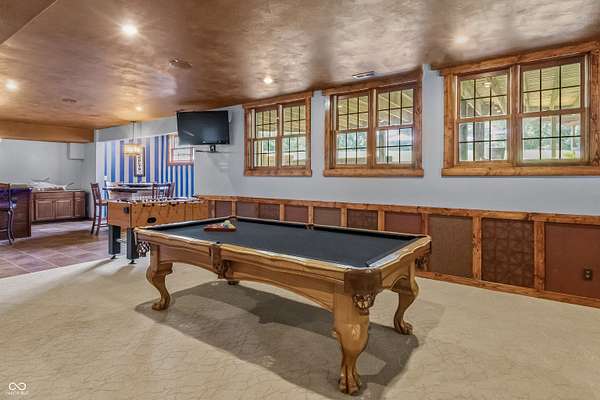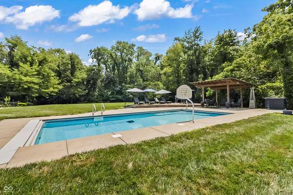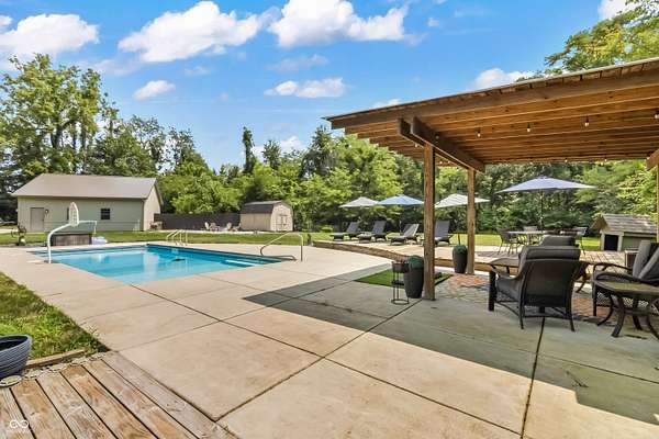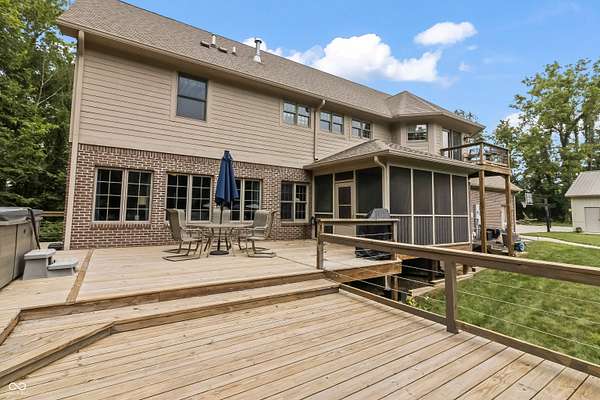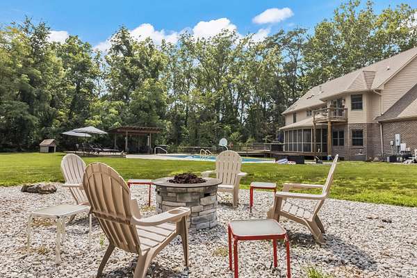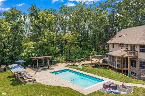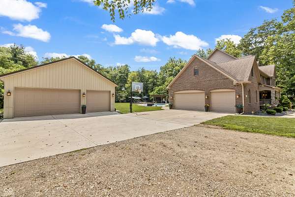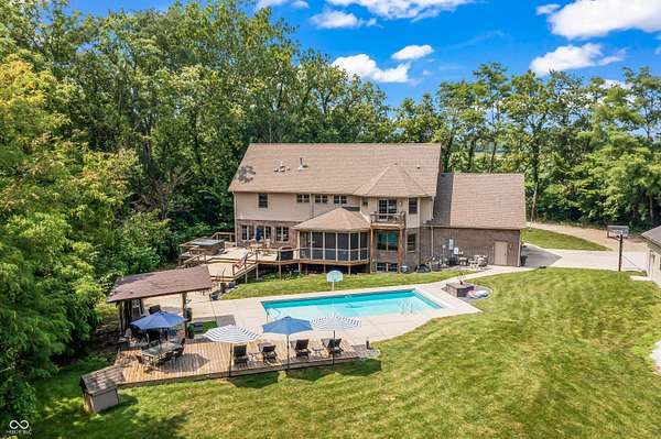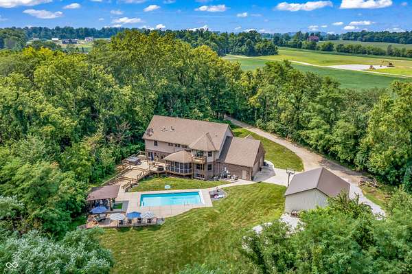 This may be the most unique property to hit the market in Hancock County where the best of both worlds truly collide. Nestled at the end of a peaceful cul-de-sac in a desirable neighborhood of custom-built homes, this 1-owner estate on 3 acres is surrounded by a dense treeline offering total privacy & the tranquility of rural living. As you approach down the long private drive, you'll be impressed by the stately brick facade & the expansive, welcoming front porch - the perfect spot for morning coffee or evening sunsets. The property includes a large pole barn in addition to the 3-car side-load garage, offering ample storage for all your toys & tools. Step into the backyard oasis & you'll find beautifully manicured grounds designed for entertaining & relaxation. Dive into the sparkling inground pool, unwind in the hot tub under the stars, gather w/ friends around the fire pit, or lounge under the pergola on the expansive deck w/ multiple gathering areas. There's even an extra storage shed to keep everything organized. Inside, the home is equally impressive. A grand two-story foyer sets the tone, leading you into spacious & inviting living spaces that are meticulously maintained. The main level features formal dining room, updated kitchen w/wet bar, mud room, great room, office/den, & a beautiful family room lined w/walls of windows. The 3-season screened-in porch provides the perfect place to relax & take in the views of the private backyard sanctuary. Upstairs, you'll find 4 bedrooms, laundry room, amazing primary balcony, & massive primary walk-in closet that must be seen to be believed. The finished walk-out lower level is a true showstopper, offering a 2nd family room w/fireplace, 2nd kitchen, gaming area, workout room, full bath, & 2nd laundry hook-up. Walk out to another outdoor entertaining space complete with seating & another cozy fire pit. This home has been a fabulous entertainer's home & it's ready for the next owner - Imagine all the fun you'll have here