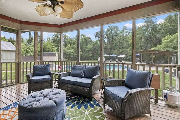 - Balcony, Barn Pole, Fire Pit, Pool, Storage Shed