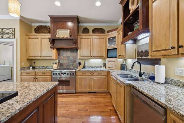 - Dishwasher, Disposal, Gas Oven, Gas Range, Microwave, Refrigerator, Stainless Steel Appliance(s), Trash Compactor, Washer