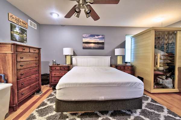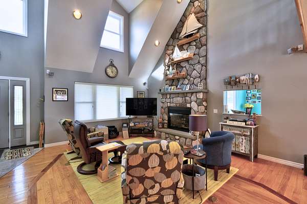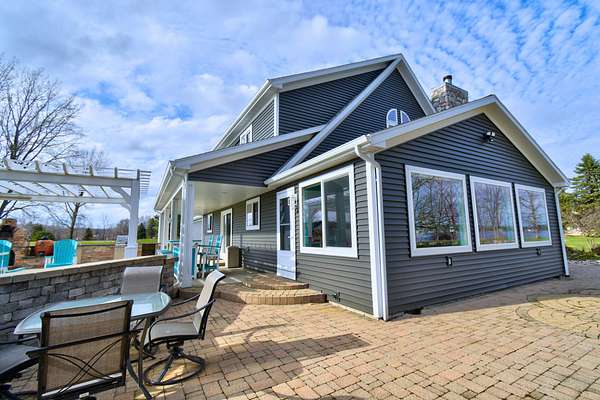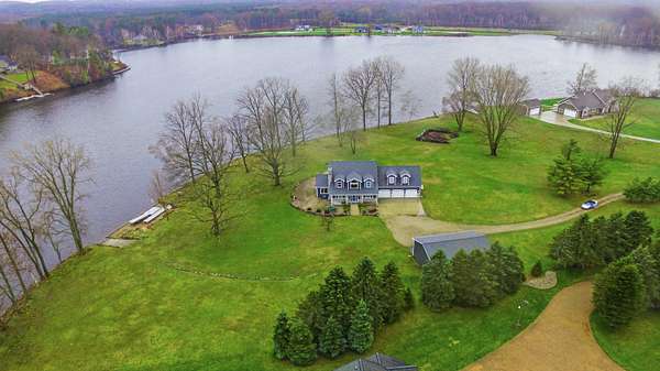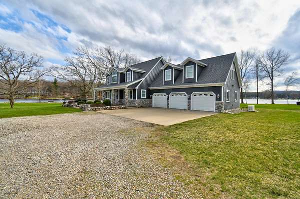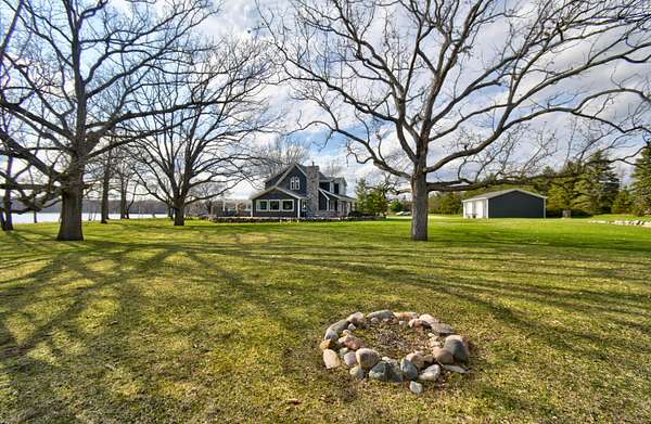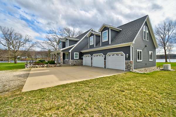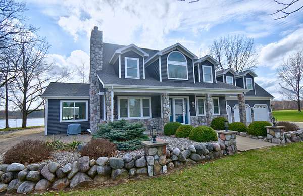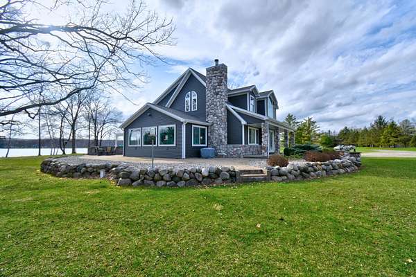 Welcome to the kind of lakefront living people spend years trying to find and rarely do. Set on an incredible 734 feet of private frontage on Lake Isabella, this property delivers the space, privacy, and all-sports lake lifestyle that most buyers only dream about. From sunrise coffee in the sunroom to evenings around the fire pits with water views in every direction, this is the place where everyday life feels like a vacation. Inside, the home is dialed in with thoughtful updates and a layout built for both comfort and entertaining. The open-concept main level is filled with natural light from oversized windows and skylights, showcasing hardwood floors, modern lighting, and panoramic lake views from nearly every room. The completely updated kitchen features Cambria quartz countertops, subway tile backsplash, stainless steel appliances including a double oven, and a built-in wine fridge all centered around a functional island with breakfast bar seating. The main floor ensuite offers dou ble closets, dual sinks, and a walk-in tiled shower with multiple shower heads. Let the day drift away in the sunroom that provides a front-row seat to the water year-round. This home offers 4 bedrooms, including a massive bonus room the same footprint as the 3-car garage, Additionally you will find 1.1 bathrooms with Corian countertops, a second-level family room, built-in storage in bedroom 3, and a main floor laundry room with sink, along with abundant cabinetry and storage throughout. Step outside to your paver patio and pergola, leading to a fully equipped outdoor kitchen featuring a refrigerator, wood-fired pizza oven, natural gas grill, fireplace, sink, Vision Kamado smoker and grill and granite counters perfect for entertaining at any level. With a private boat launch, seawall, and beach area, everything you need for the most amazing lake life experience is right at your fingertips. The sprawling yard, mature trees, multiple fire pit areas, and open green space create a setting that is both private and inviting. For storage and hobbies, this property delivers with a 3-car attached garage and a 24x40 pole barn with high ceilings, concrete floors, and a dedicated workshop area. Major updates provide peace of mind, including a new roof and siding in October 2024, new heating and cooling systems in 2024, new Pella windows, new steel doors, a Generac whole-house backup power system, water softener, underground sprinkler system, and recessed lighting throughout. Located near the Lake Isabella Property Owners Association, this all-sports lake community offers year-round recreation including boating, fishing, and nearby amenities, all within convenient driving distance of Grand Rapids, Lansing, Detroit, Traverse City, and Chicago. If you've been waiting for a true lakefront property with space, updates, and unmatched frontage, this is it schedule your private showing and experience it for yourself before someone else claims your spot on the lake.