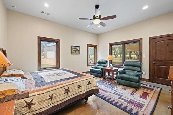 Welcome to a truly special offering in the highly sought-after Sandy Oaks Ranch, just 5 minutes from the charm and convenience of downtown Johnson City. This exceptional 75+/- acre property is comprised of three fully fenced 25+/- acre tracts, each secured with brand-new fencing and offering both privacy and flexibility for future use or resale. The centerpiece of the property is a dog-run style ranch home featuring 3 bedrooms and 2.5 bathrooms, designed with comfort and entertaining in mind. Enjoy not one but two expansive covered outdoor living areas one of which is fully screened-in and showcases a stunning oversized stone fireplace and outdoor TV setup, ideal for gatherings year-round. Additional amenities include covered parking at the front of the home for added convenience. -This turnkey ranch also includes top-tier infrastructure: -Two private water wells -A peaceful fish pond -A fully insulated 40x60 shop with water and electric, plus an attached 15x27 covered area -An additional separate workshop for tools, equipment, or hobbies The land has been meticulously maintained with the majority of cedar cleared, while leaving strategic coverage for abundant native wildlife. The propertys natural beauty is highlighted by rolling terrain, mature oak trees, and open pastures perfect for horses, livestock, or recreational use. Located in one of the fastest-growing regions in the country, this property offers the perfect blend of seclusion and accessibility just under an hour to both Austin and San Antonio, and only 30 minutes to Fredericksburg and Marble Falls. Whether you're seeking a private ranch getaway, a full-time residence, or a long-term investment in the heart of the Texas Hill Country, this is a rare opportunity you don't want to miss.