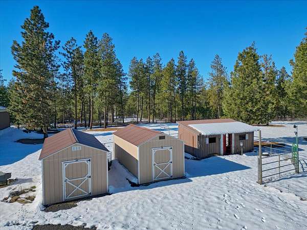 Spacious gated country estate on ~10 acres, 10 min. South of Spokane Valley. This custom 6,310 sq ft rancher w/ 7-car Garage blends modern luxury amenities w/ exceptional space and versatility-offering privacy, functionality, and endless possibilities! More than 2/3 of the home was newly built in 2025 with energy-efficient design, accessibility in mind, and high-end finishes, including wraparound decks, courtyard, and sport court. The layout includes 6 bedrooms (w/ 2 primary en-suites) and 5.5 baths-ideal for multigenerational or flexible living, guests, dedicated work from home or school. Features include solid hardwood floors, granite surfaces, natural gas heat, appliances and fireplace, blazing fast Starlink internet, and Cat5e wiring. A 2-bed guest home provides additional private living quarters. The grounds offer a huge 60'x120' shop w/ 200-amp service, concrete floor, RV parking (2), one with full hookups. Other amenities include: 200 GPM well, horse setup, orchard, garden, root cellar, & chicken run.