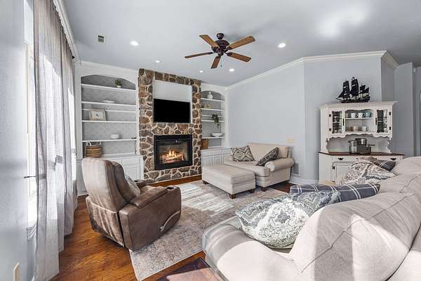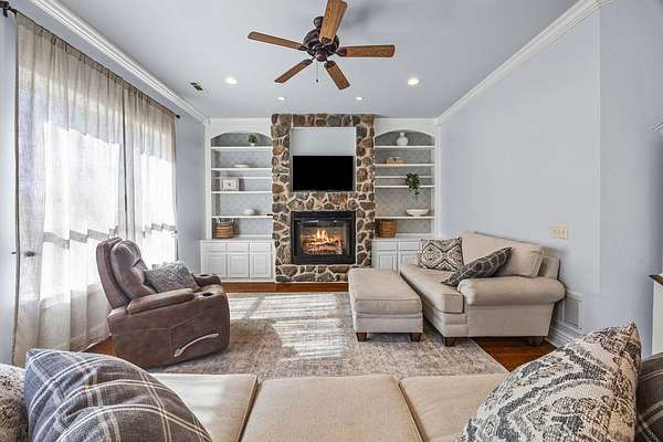 - Built In Features, Ceiling Fans, Eat In Kitchen, Granite Counters, In Law Floorplan, Multiple Living Areas, Pantry, Split Bedrooms, Sun Room, Walk In Closets, Window Treatments