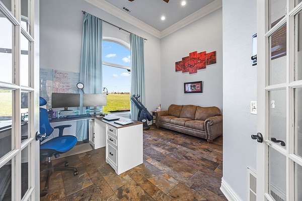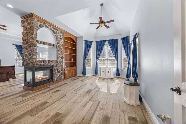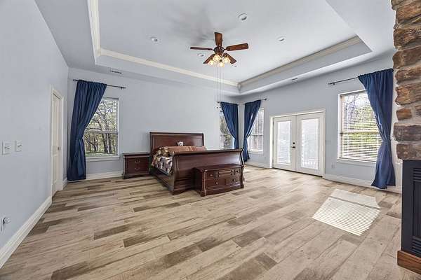 Experience the perfect blend of luxury, space, & privacy on 7.6 acres, approx. 15 minutes from downtown Bentonville. This home offers 5 bedrooms, an office, each main-level bedroom with its own private bath, & two living areas. The primary suite features a sitting area, dual-sided fireplace, & spa-style bath. Designed for everyday living & entertaining, the home includes two living areas, a bright sunroom, & a spacious kitchen with granite countertops. Step outside to enjoy the in-ground pool with waterfall, diving board, & deck overlooking the pool. Recent improvements include interior paint (2026), updated lighting, new flooring, remodeled office bath, new pool pump, HVAC (2024), & a 2023 roof. The home also features a newly built 30x40 shop with private guest quarters including kitchen, living area, bedroom, bathroom, laundry, separate septic, & upstairs storage, ideal for guests or multigenerational living. A rare opportunity to own a beautiful property with acreage, pool, and guest house with shop.