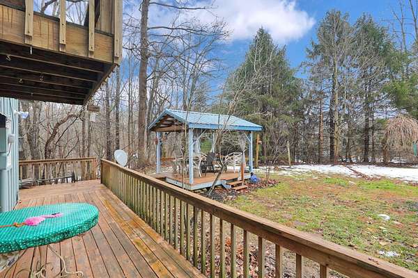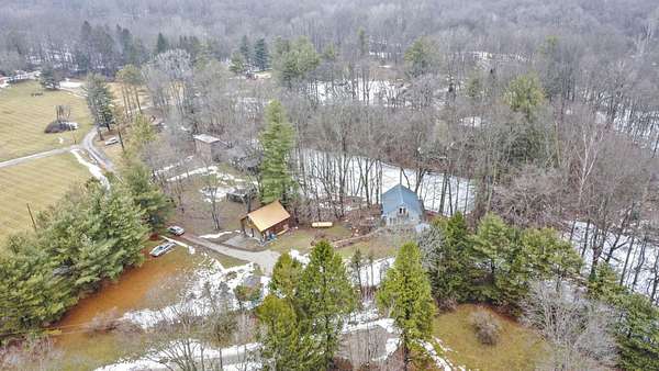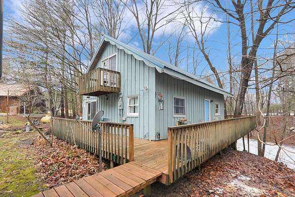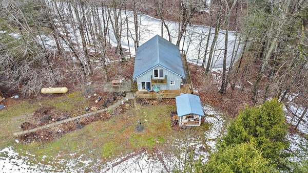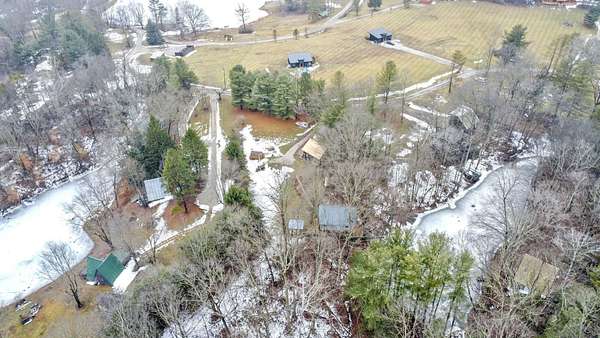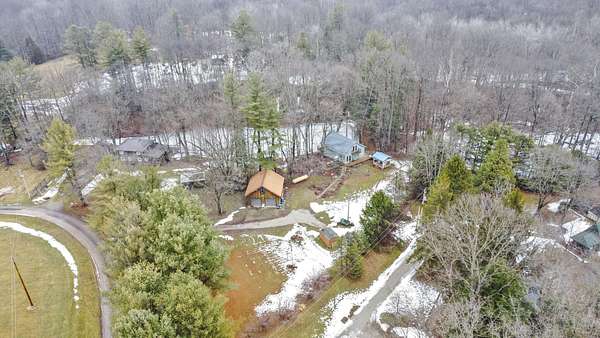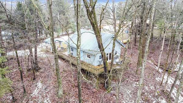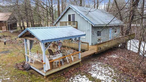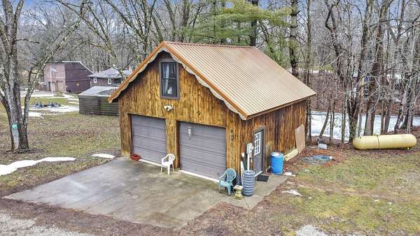 Nestled on 3 parcels encompassing approx 1.75 acres in the heart of the Hocking Hills' popular Holiday Haven community, this enchanting property offers a rare opportunity for a multi-generational retreat or high-performing short-term rental. The centerpiece is a quaint approx 1100SF cottage, featuring a dramatic living room w/cathedral ceiling, sizable kitchen, main floor BR & laundry. Wrapping its way up, is a wrought iron spiral staircase leading to the versatile 2nd-floor loft, which provides an open office/den area & large BR w/private walk-out balcony. Modern comforts abound, including Anderson windows & doors, newer HVAC, metal roof, renovated bath w/walk-in shower, & propane generator for total peace of mind, which will support most of the house during a power outage. The outdoor experience is elevated by a spacious 3-sided wrap-around deck, which overlooks the lush ravine & serene pond below. Recently built just off the deck, a charming gazebo is perfect for relaxing under cover with a glass of wine, cup of coffee or shot of bourbon! Adding immense value is the cedar-sided 2-car detached garage, which houses a fully finished studio apartment/flex space above, complete with kitchenette & full bath. Holiday Haven offers a lake, beach, playground & a few other amenities. Located in the Logan Elm School District, this versatile estate perfectly balances the ''cozy cabin'' aesthetic with the infrastructure needed for a turnkey investment or a private sanctuary. Agent is related to seller!