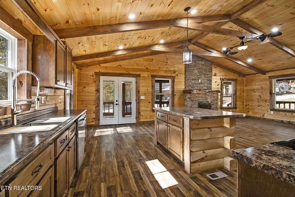 Privacy, rustic, log home sound like your kinda home. Take a look at this true log home on 4.97 acres with some cleared land, some fencing & small pond. 3/4 wrap around rocking chair porch great for entertaining. Enjoy the rustic feel as soon as you walk thru the doors. Stone electric fireplace, cathedral ceilings, laminate floorings thru out to add to the coziness, custom built cabinets with lots of space for the chef in family. 3 spacious bedrooms with large closets. Master has double vanity and walk in shower. Wait there is a 30x60 man cave with car lift, air compressor and wood stove, and 1 bedroom 1 bath living quarters that could be a in law quarters. Storage building out back with open storage on each side for equipment or your toys. Come see this on for yourself.